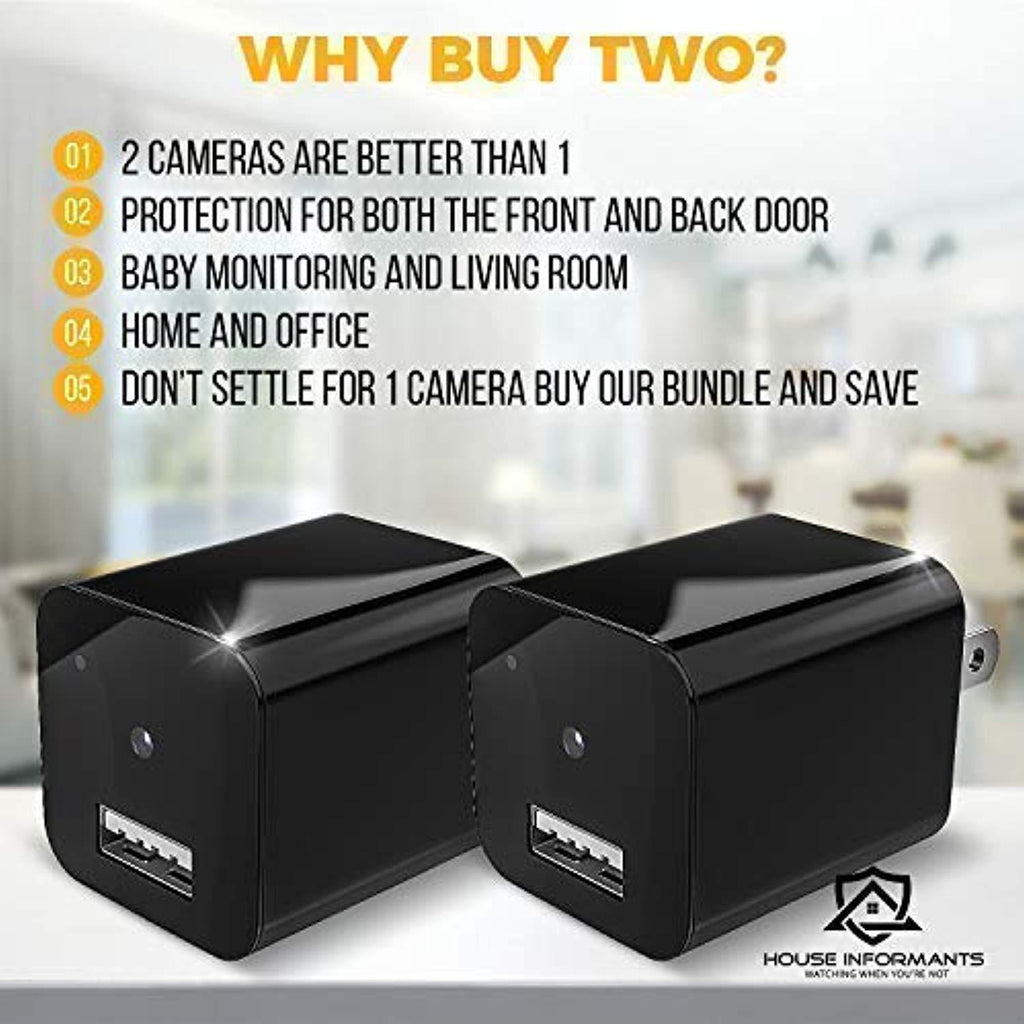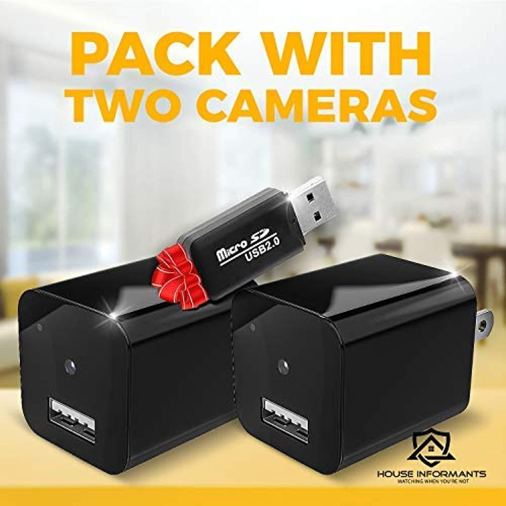 Hidden Spy Camera | 2 Pack | 1080P Full HD |Has Motion Detection | Loop Recording | Free Flash Transfer Stick Protection Surveillance Your Home Office by House Informants