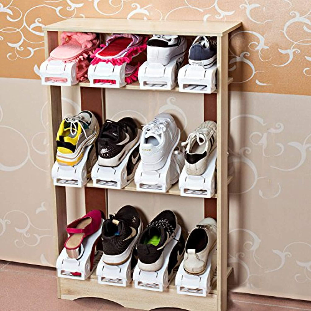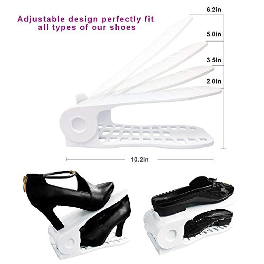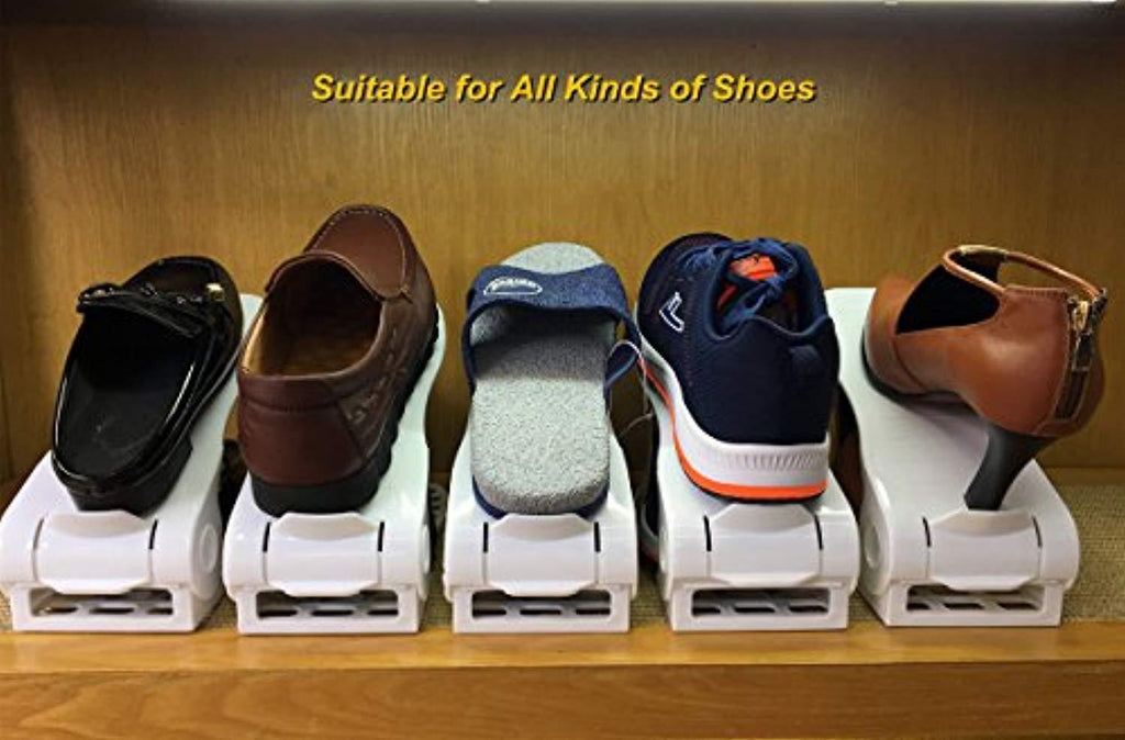 • Great space saver:Double layers shoe slotz can fit twice as many shoes on shelves.