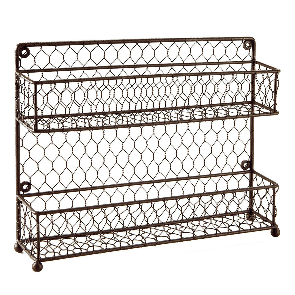 • Minimizes usage of counter space with this country style 2 tier chicken wire spice