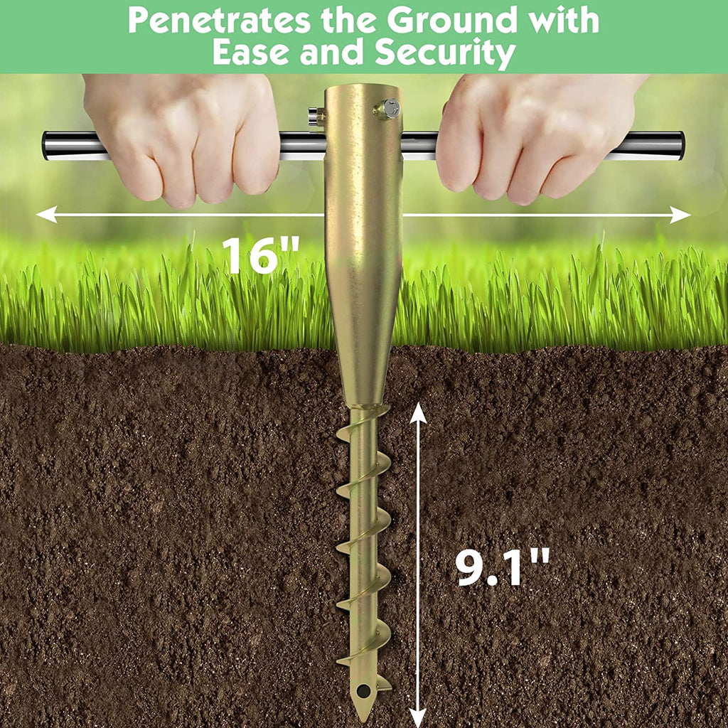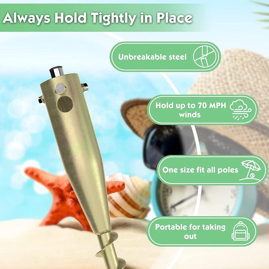 • Versatile Used Umbrella Anchor: This screw-in umbrella ground anchor is pretty portable and sturdy to be screwed into grass,dirt or sand and hold up a good size umbrella,flag pole,tiki torches,string lights,garden parasols,gazebos,bird feeders pole,ball pole,Christmas tree
