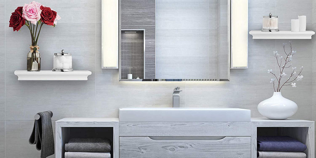 Kloveyleaf Floating Shelves Set of 2 Modern Style Shelves for Bedroom, Kitchen, or Bath, Includes Wall Mounting Hardware (White)