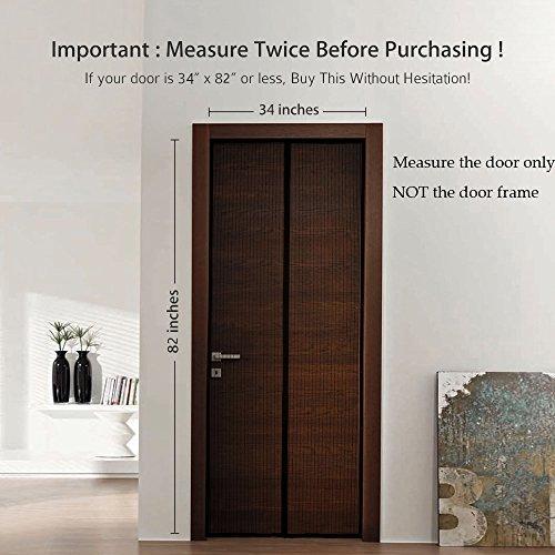 • Door Size Compatibility (MEASURE DOOR FIRST): The SIZE of this magnet screen door is 39”x 83”, and it FITS door size 36” x 80”, 38” x 80”, 36” x 82”, 38” x 82”. The mesh use high-density and antioxidant material, strong and durable. Keep the bugs out and let the fresh air in.