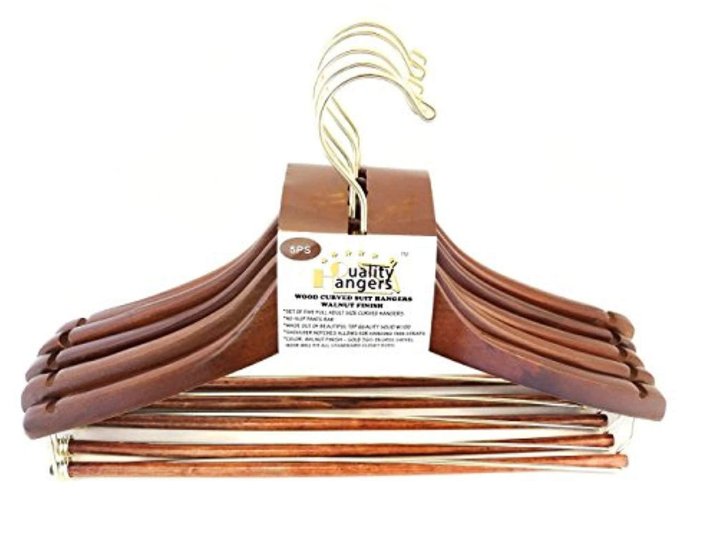 Quality Hangers Wooden Hangers Beautiful Sturdy Suit Coat Hangers with Locking Bar Gold Hooks (5 PACK)