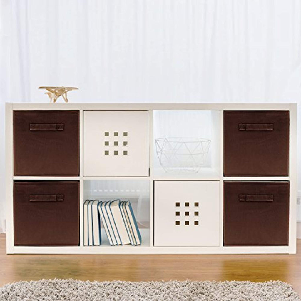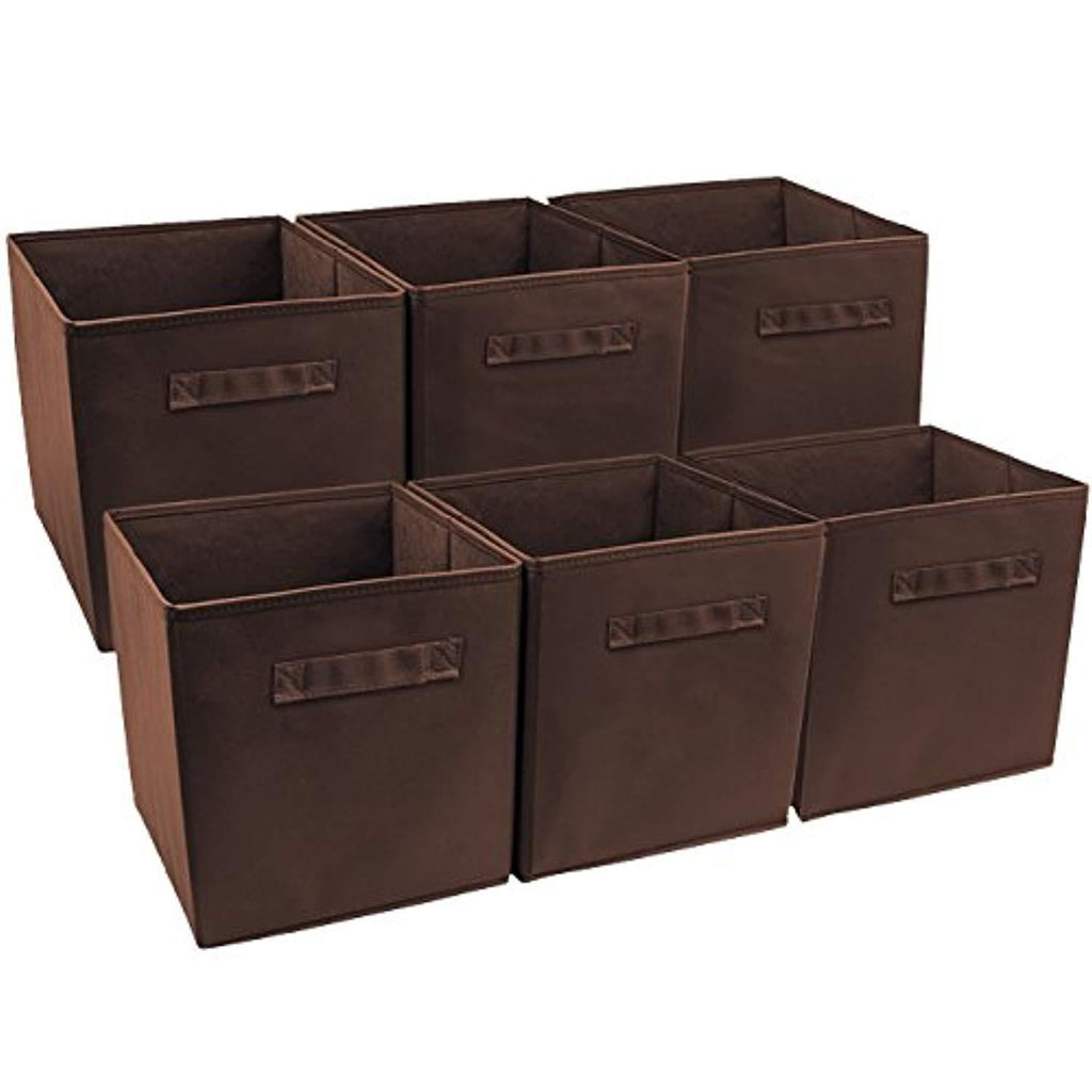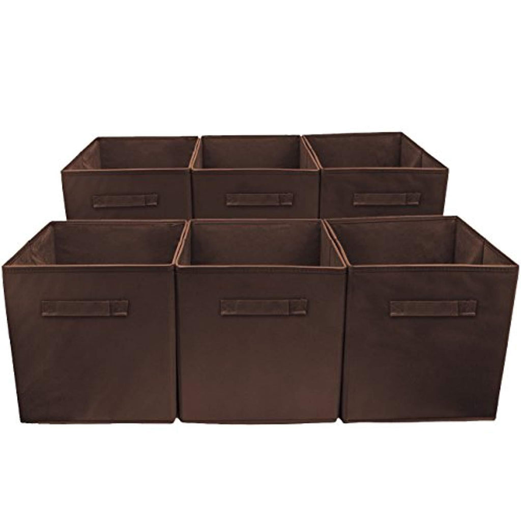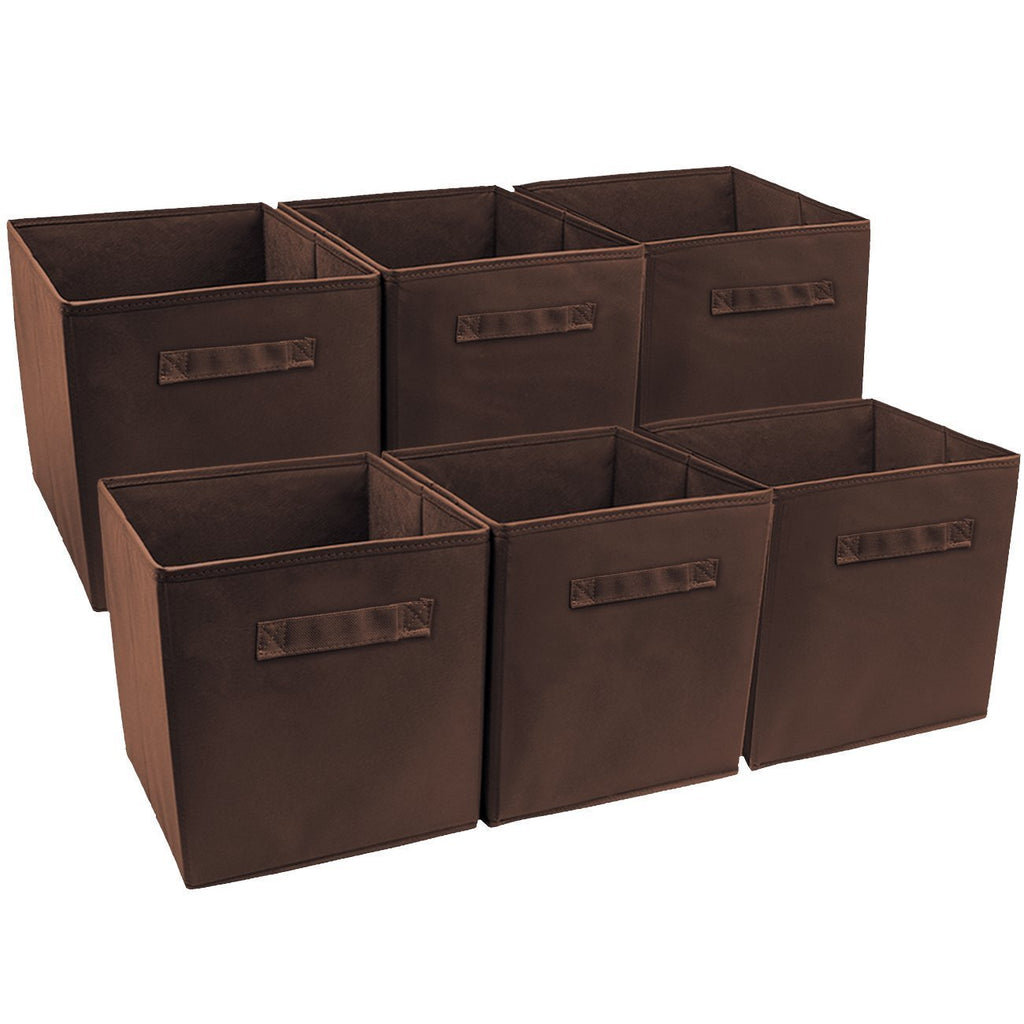 • This set of six collapsible storage cubes easily decorates a room, while being used for storage. Practical and stylish, these chocolate covered cubes are crafted of nonwoven polypropylene for a durable effect.