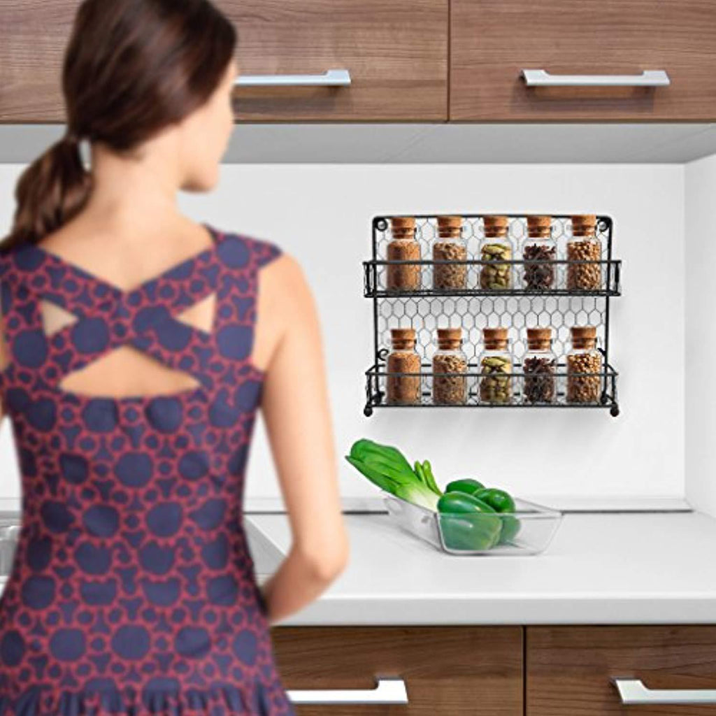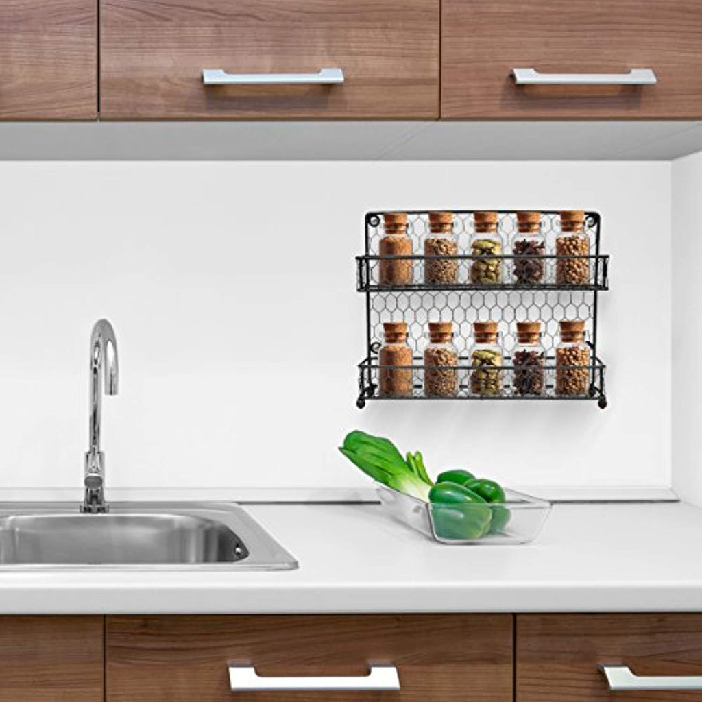 • 2 TIER SPICE RACK—Wall mounted spice, herb, and accessory rack fits easily on counter tops , walls, or in cabinets to free up space