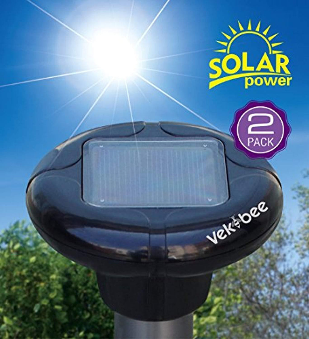 Vekibee 2 Piece Solar Powered Sonic Mole Repellent Rodent Repellent Ultrasonic Pest Repeller Outdoor Pest Control Repels Mole Rodent Vole Shrew Gopher