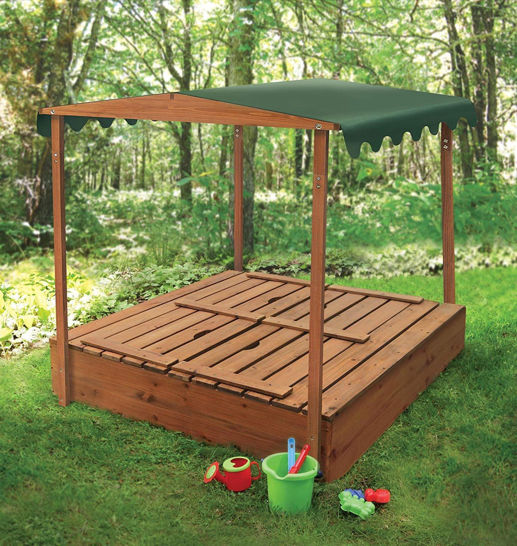 Badger Basket Covered Convertible Cedar Sandbox with Canopy and Bench Seats