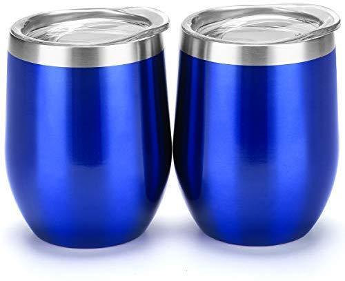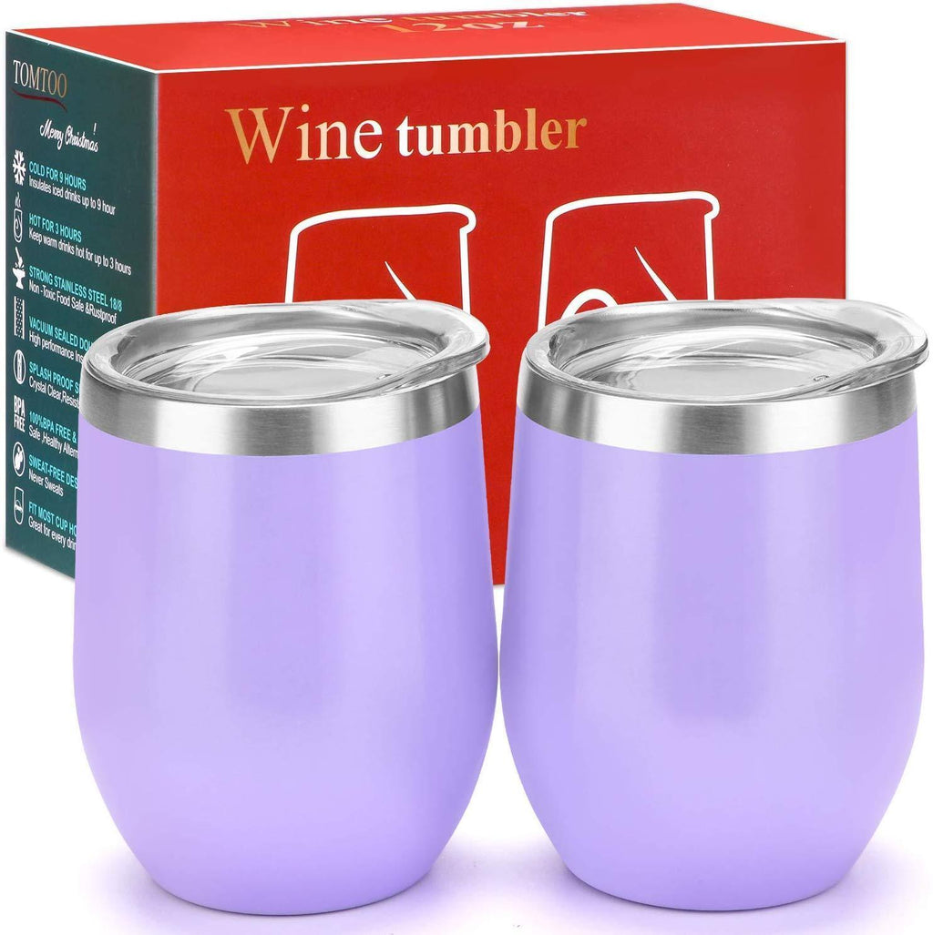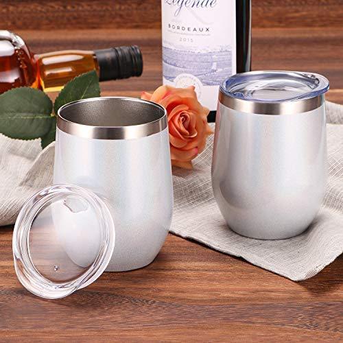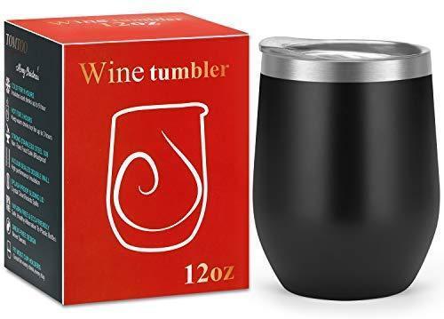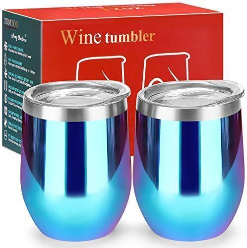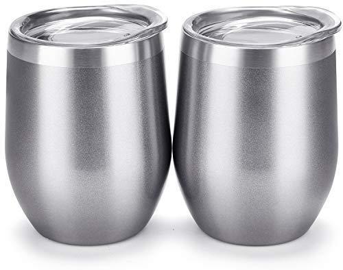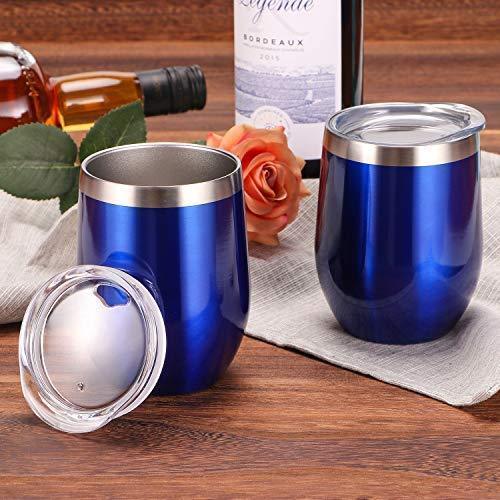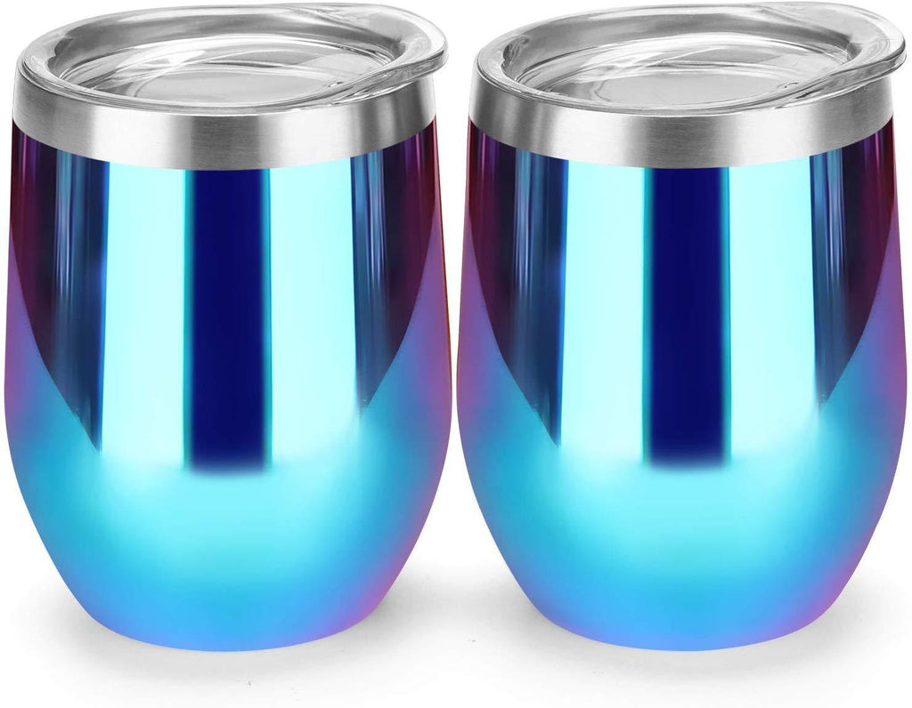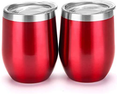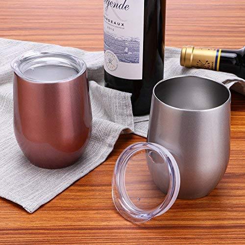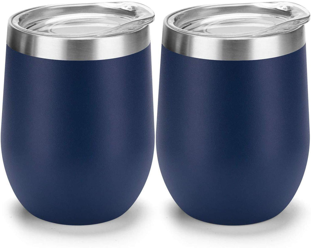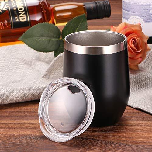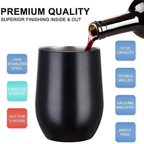 12 oz Double-Insulated Stemless Glass, Stainless Steel Tumbler Cup with Lids for Wine, Coffee, Drinks, Champagne, Cocktails, 2 Sets (Black)