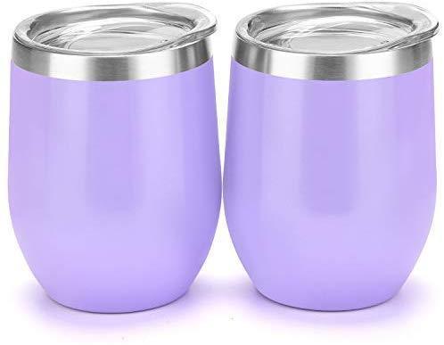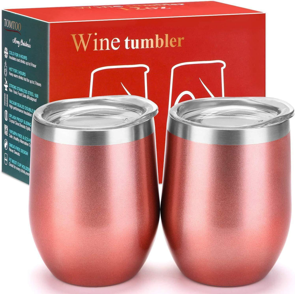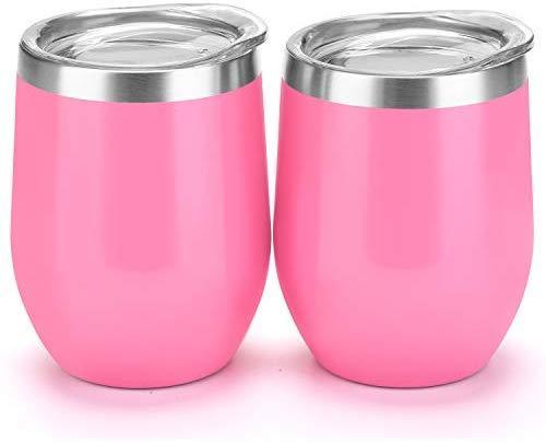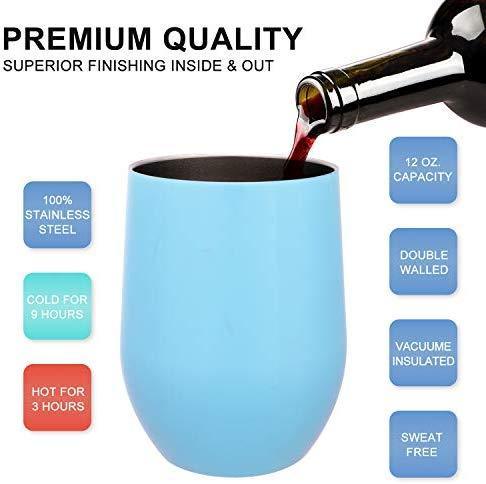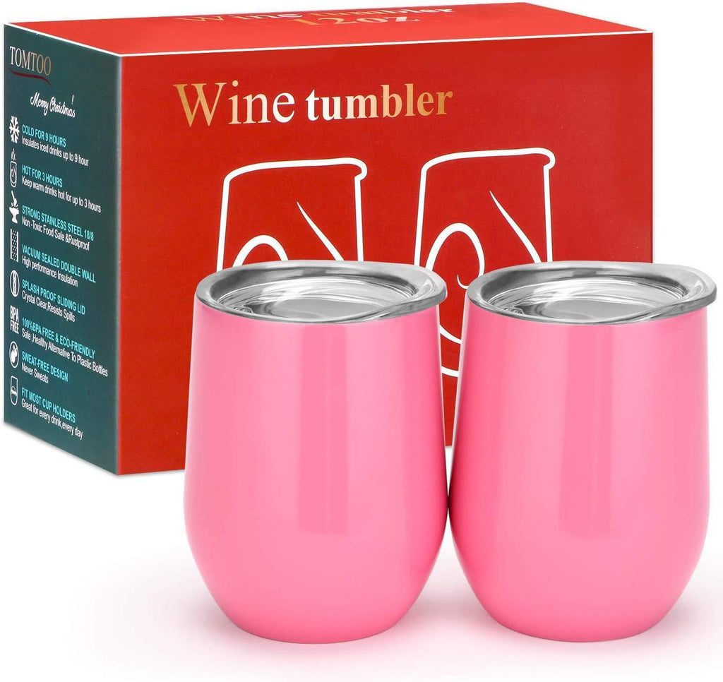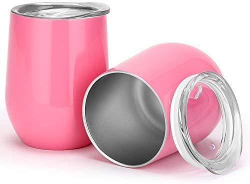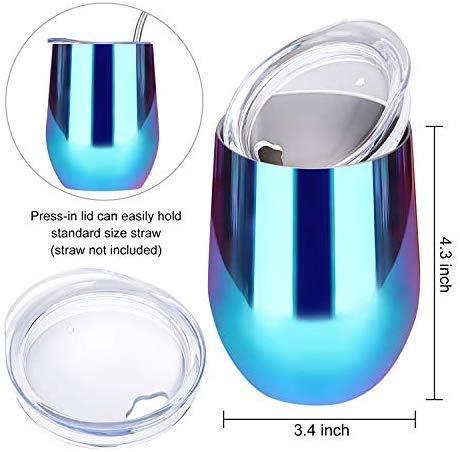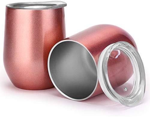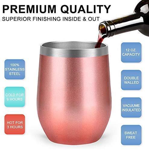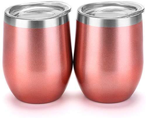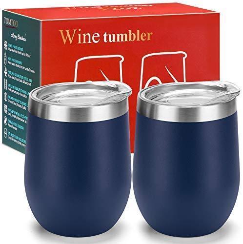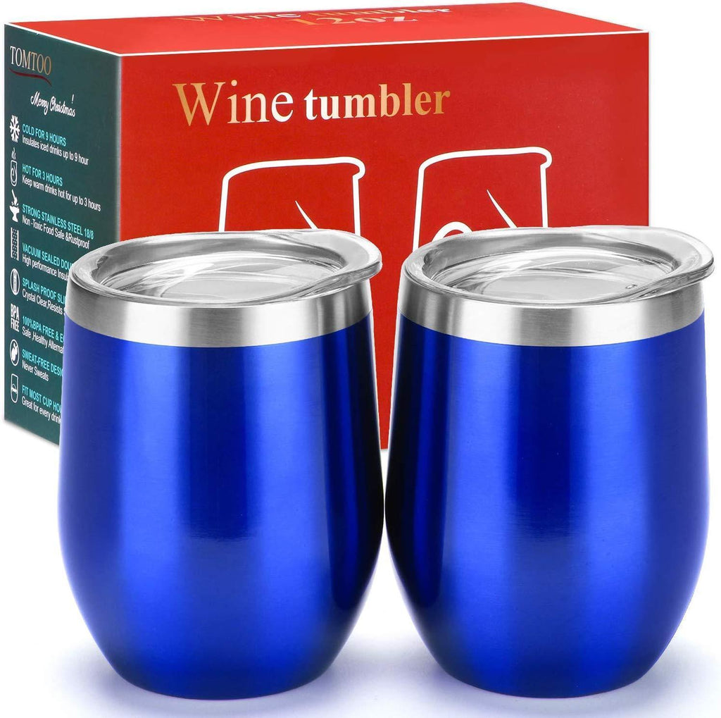 12 oz Double-Insulated Stemless Glass, Stainless Steel Tumbler Cup with Lids for Wine, Coffee, Drinks, Champagne, Cocktails, 2 Sets (Black)