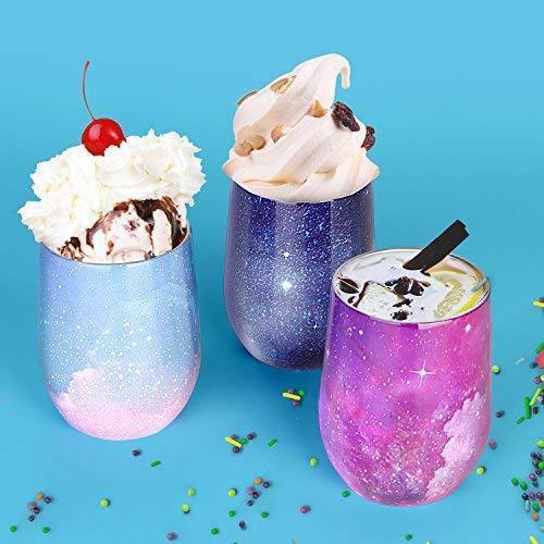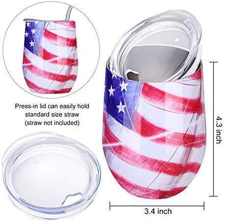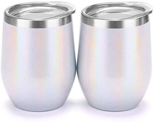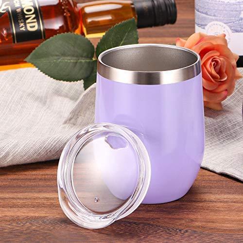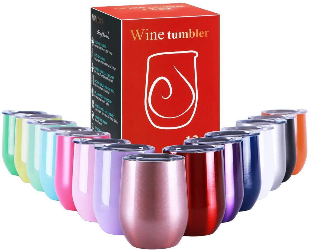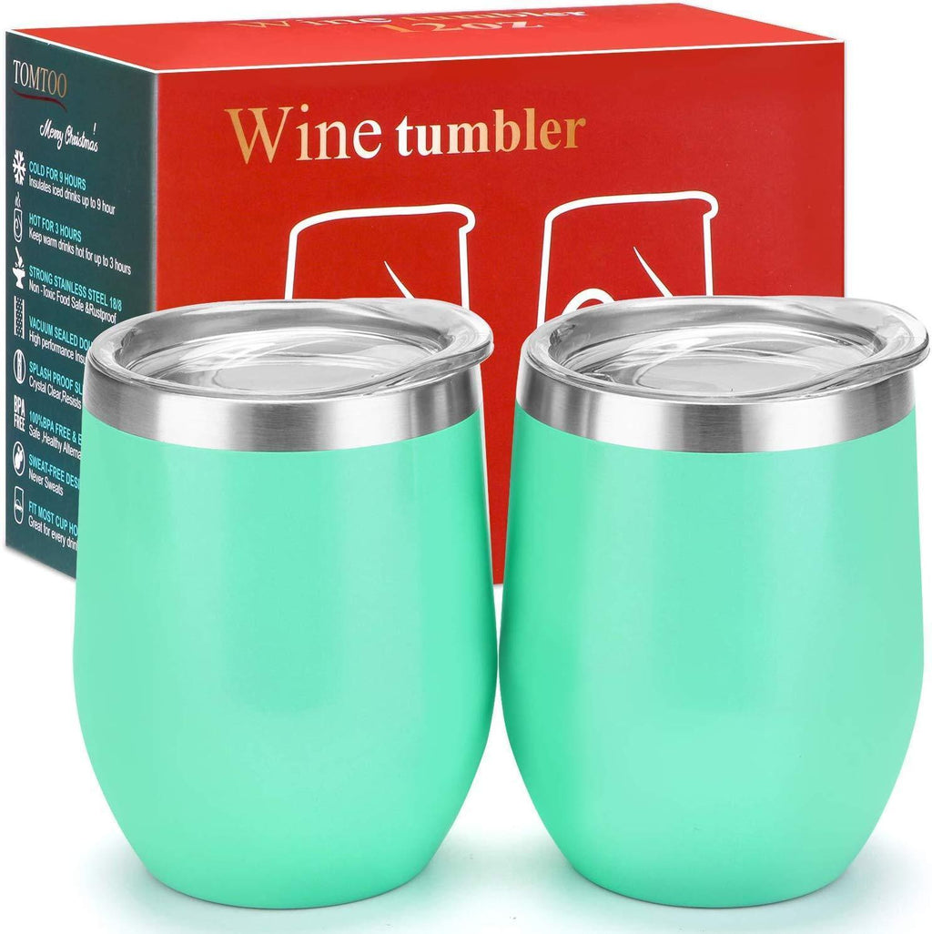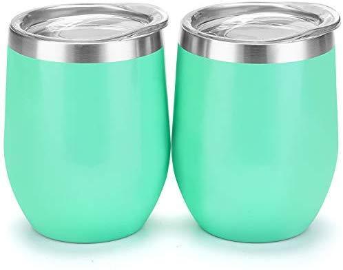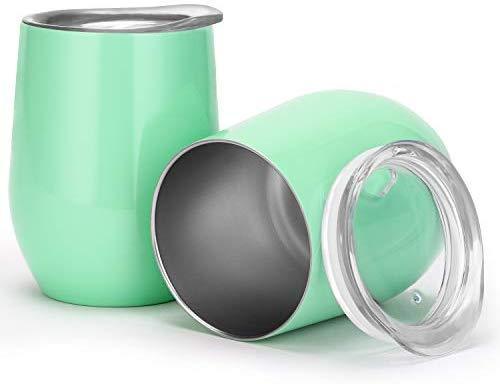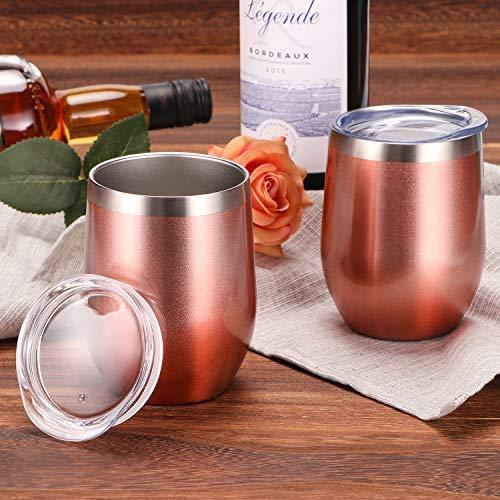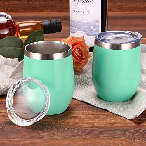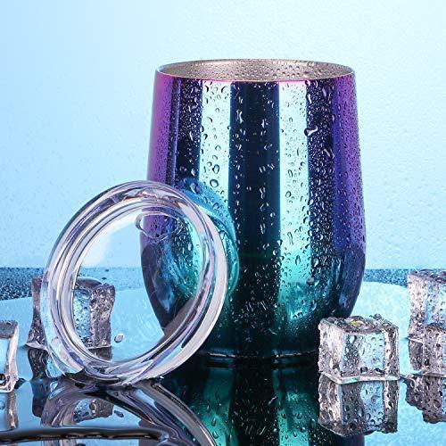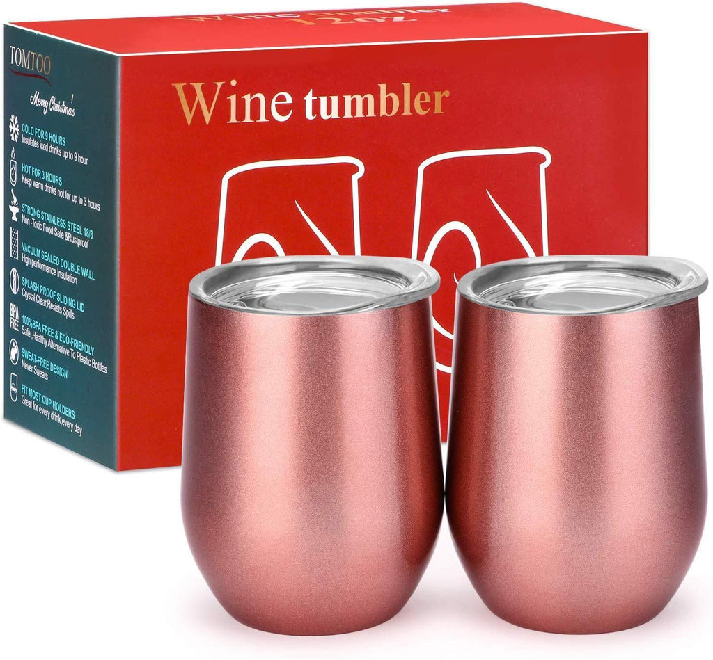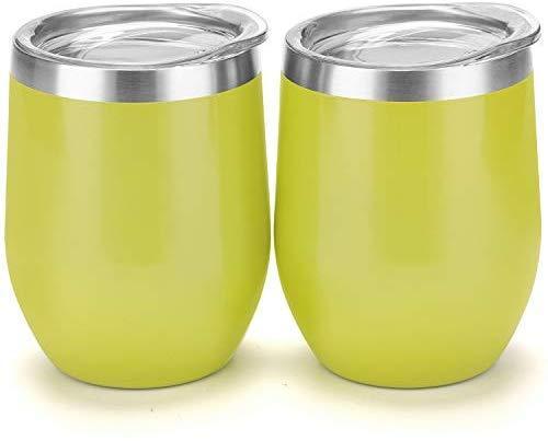 12 oz Double-Insulated Stemless Glass, Stainless Steel Tumbler Cup with Lids for Wine, Coffee, Drinks, Champagne, Cocktails, 2 Sets (Black)