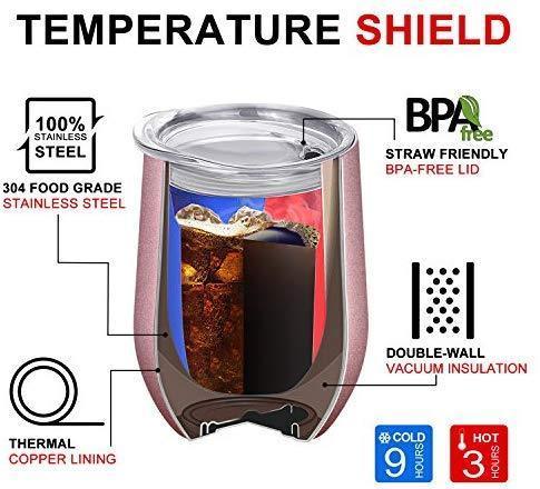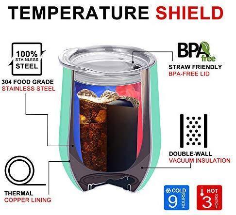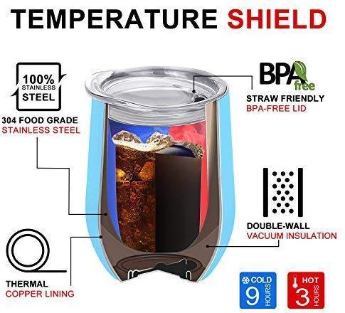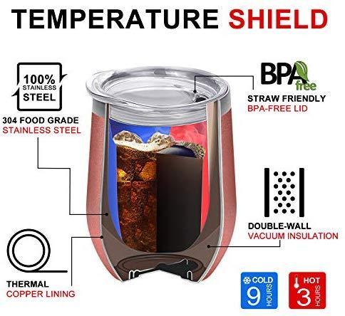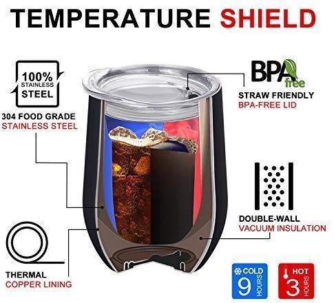 • Extra thermal copper lining conducts even temperature retention that keeps 12 ounces of hot beverages toasty for over 3 hours and cold drinks chilled for 9 hours
