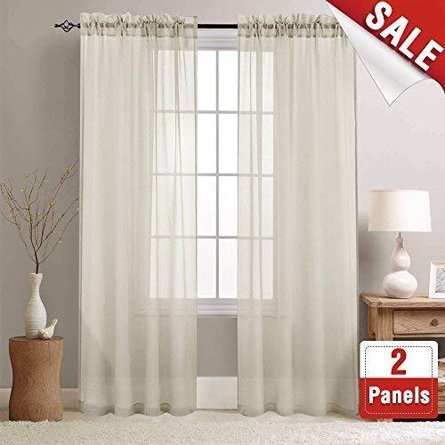 2 Panel Sheer Curtains White 84 inch Living Room Drapes Window Curtain Voile Sheers Linen Textured