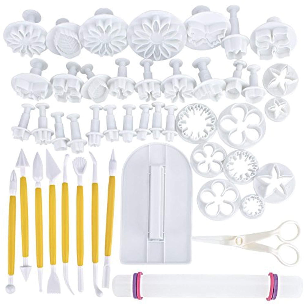 47 pcs Fondant Cutters Tools Sedhoom Catalina Fondant Molds Cake Decorating Supplies Tool Set with Rolling Pin Smoother Embosser Moulds