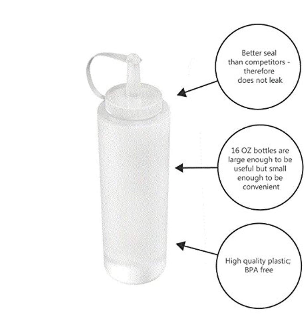 • 2 BPA FREE CONDIMENT BOTTLES perfect for Sauces, Marinades, Cooking oils, etc. Tight fitting lids to prevent leaking when not in use unlike other bottles on the market. Our fine tips also enables easy and accurate pouring.