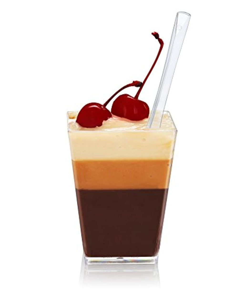 • BEAUTIFUL SERVING DISH FOR PARTIES AND EVENTS: A simple way to make any dessert look professional. Impress your party guests and friends with petite desserts that look catered and absolutely delectable in these square plastic dessert cups. Serve up anything from chocolate mousse, to pudding, to parfaits to jello shots--a great serving dish for all your parties