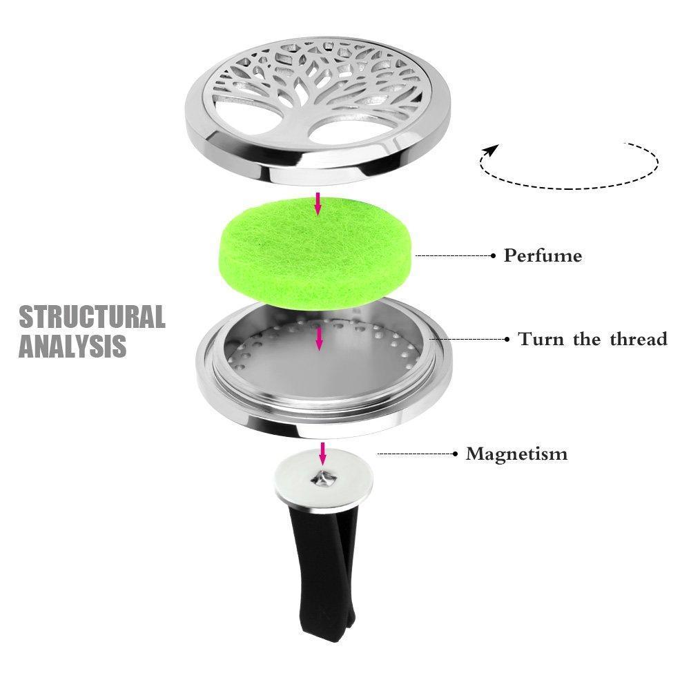 • Clip is separate from the fragrance holder that don't have to take off the clip, and easy to switch out oil felt pads but will not scratch your vents.