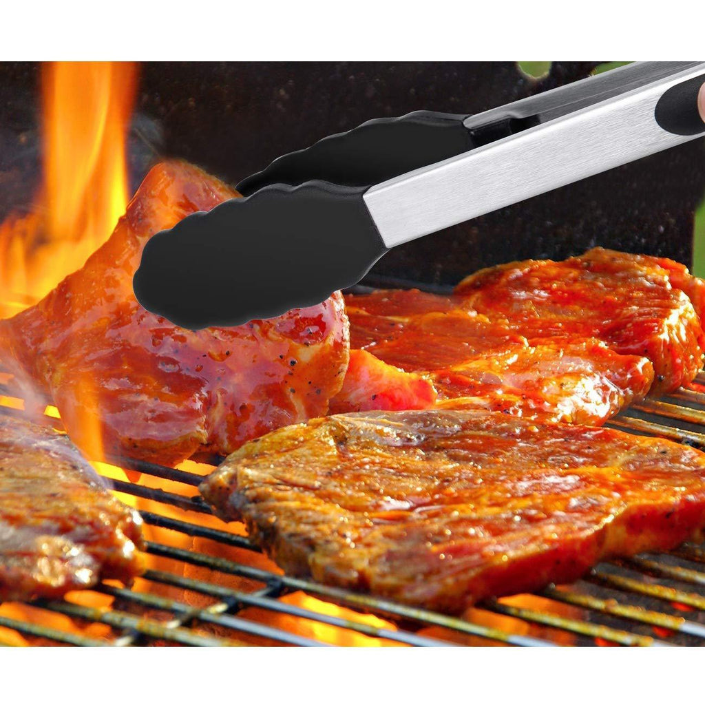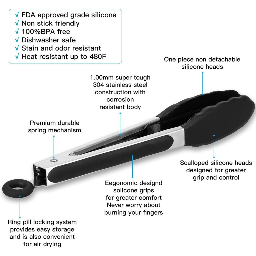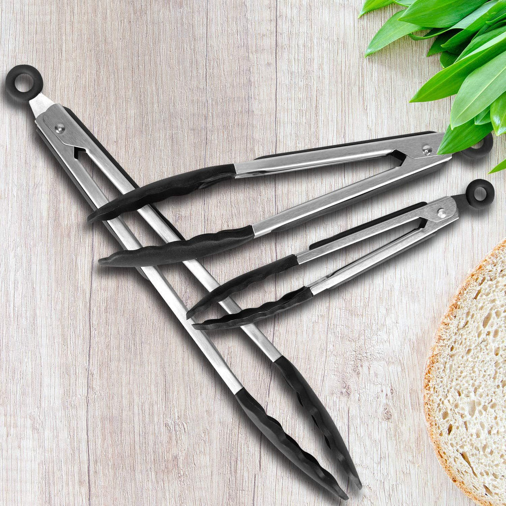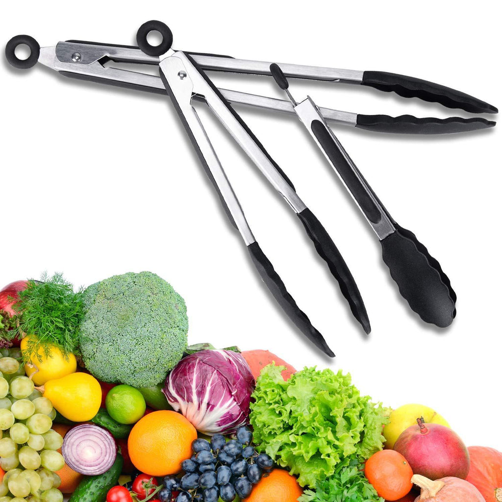 • VERSATILE AND ESSENTIAL KITCHEN SET - Set Contains: 1 x 7-Inch Tongs: 7" Handles (8" including lock) 1 x 9-Inch Tongs: 9" Handles (10" including lock) 1 x 12-Inch Tongs: 12" Handles (13" including lock).