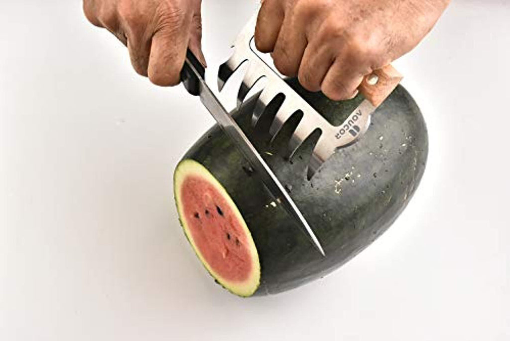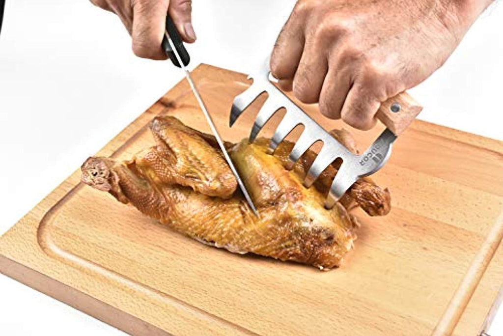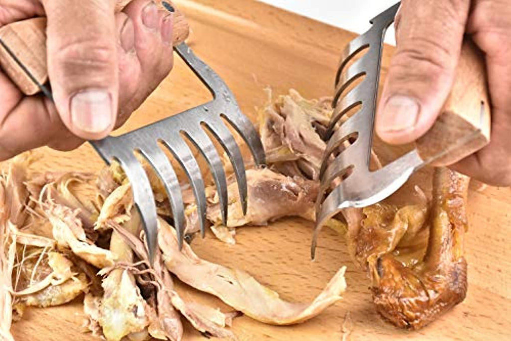 • 【ERGONOMIC】 The large bear claw shaped prongs never slip, and are much safer than using a fork to hold and carve hot meats. Use the claws to avoid burning your hands and fingers when barbecuing meats, and to prevent accidents like dropping a piping hot turkey when using forks or oven mitts.