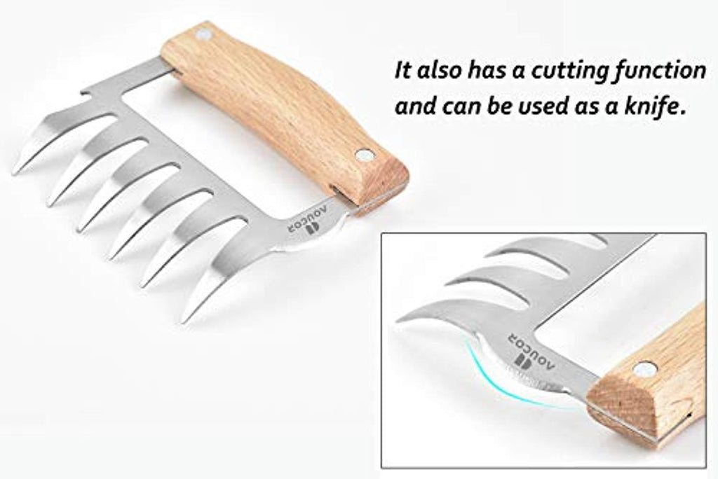 Aoucor Meat Shredder Bear Claws BBQ Stainless Steel Handheld Forks, Kitchen Tool for Shredding, Pulling, Handing, Lifting & Serving Pork, Turkey, Chicken, Brisket - Set of 2