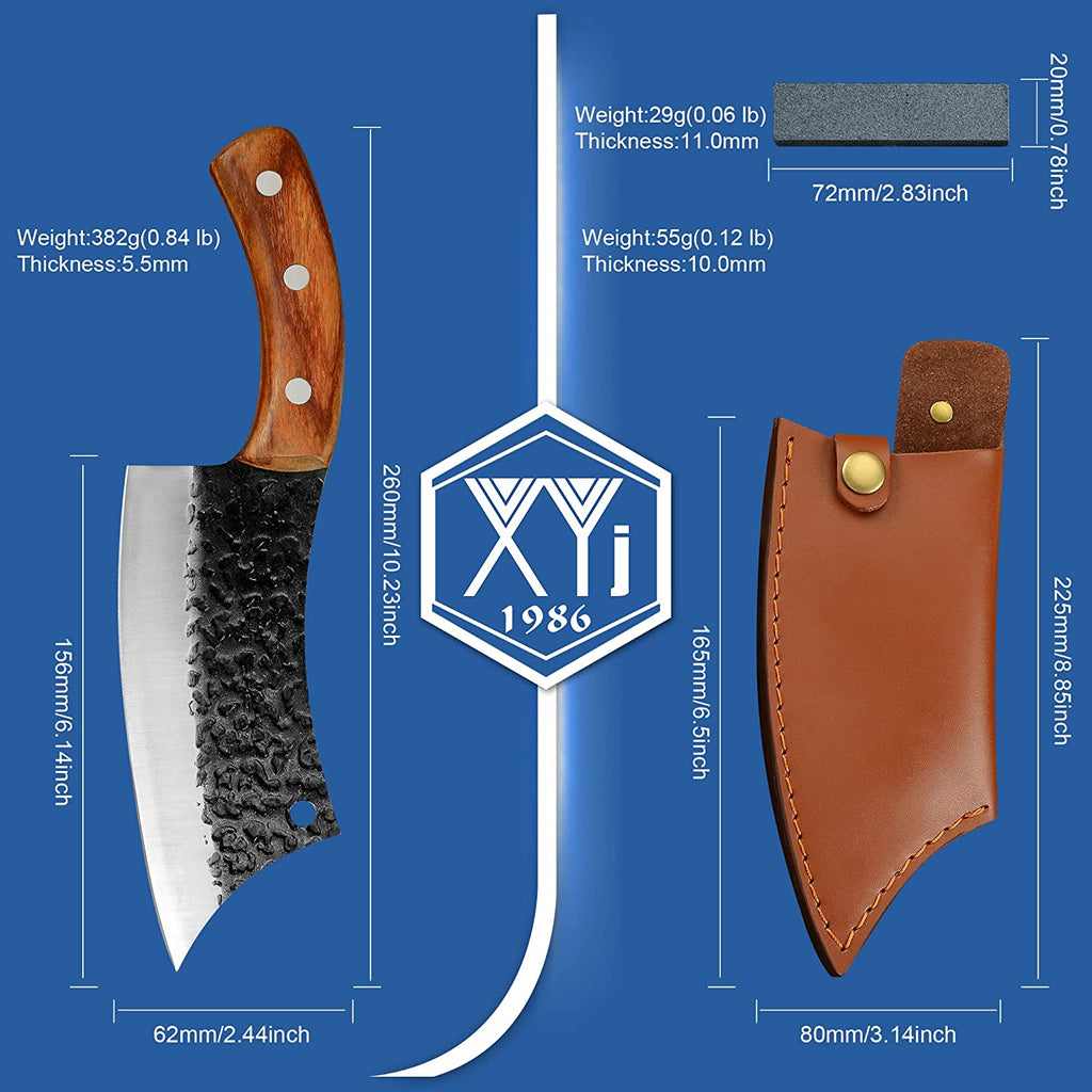 Authentic XYJ FULL TANG 6.2 Inch Kitchen Knife Chef Knives With Carrying Leather Knife Sheath High Carbon Steel Slicing Cutting Butcher Knives For Meat Vegetable Cooking Tool