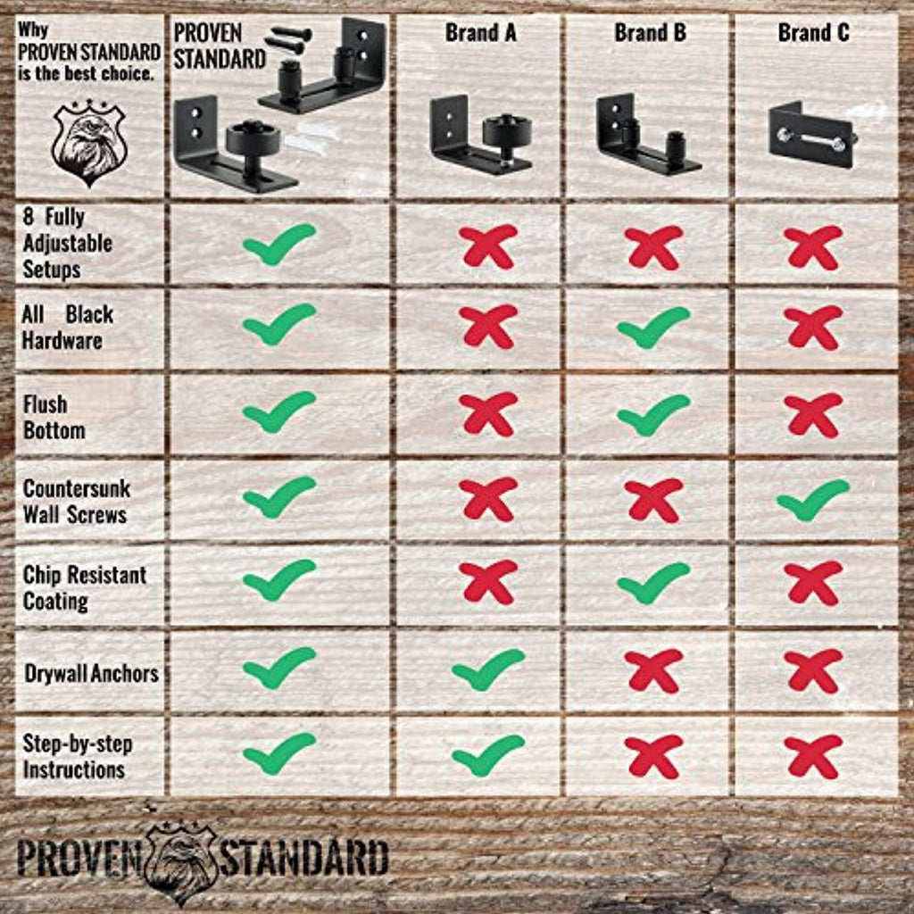 • ✅ COMPLETELY FLUSH BOTTOM: No need to drill holes in your floor for bulky hardware. This product has been specially designed to allow for the barn door bottom bracket sit completely flat on the floor. This allows for a quick and painless installation. Additionally, the securing wall screws will lay flush with the bracket to prevent from sticking out and scraping against your beautiful barn door!