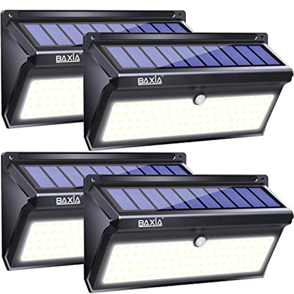 BAXIA TECHNOLOGY Outdoor Wireless 100 LED Solar Motion Sensor Waterproof Security Wall Lighting Outside for Front Door, Backyard, Steps, Garage, Garden (2000LM, 4PACK)