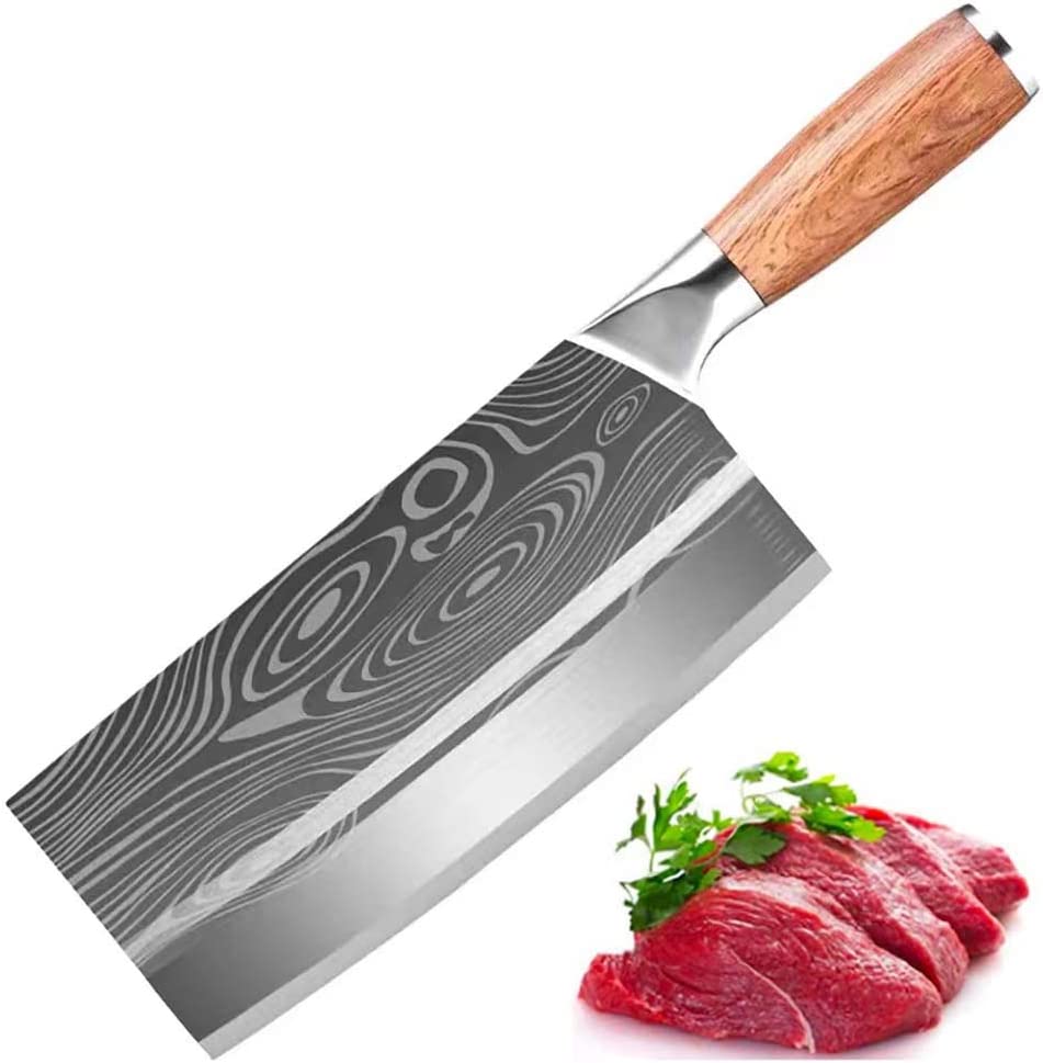 • √ Handle - Ergonomically designed carving classic rosewood handle of the meat cleaver is anti-slip and anti-freezing and firm to grip avoiding harms to your hand