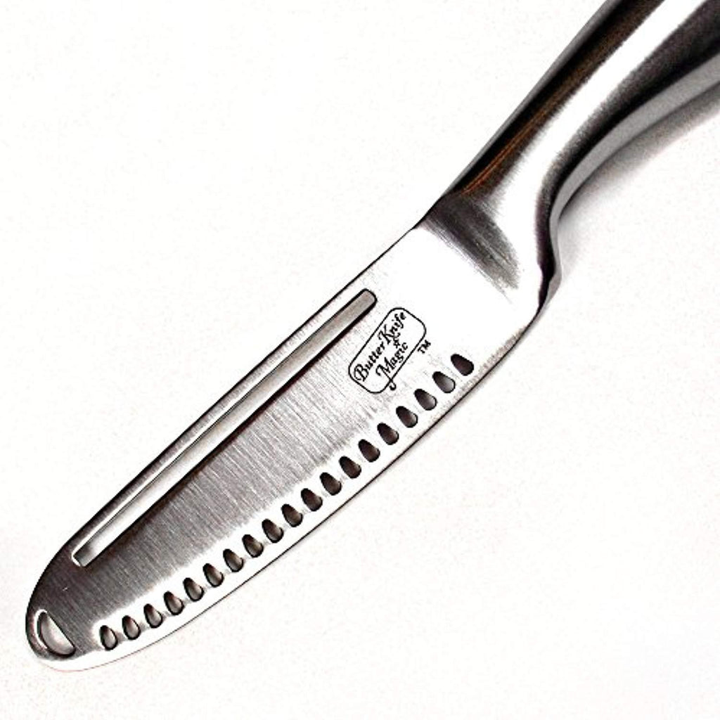 Butter Knife Magic, 3-in-1 Spreader, Grater, Slicer, Curler, 304SS Stainless Steel with Brushed Metal Finish. Create Spreadable Butter Ribbons and Slices. Stop Tearing Your Bread. Makes a Great Gift.