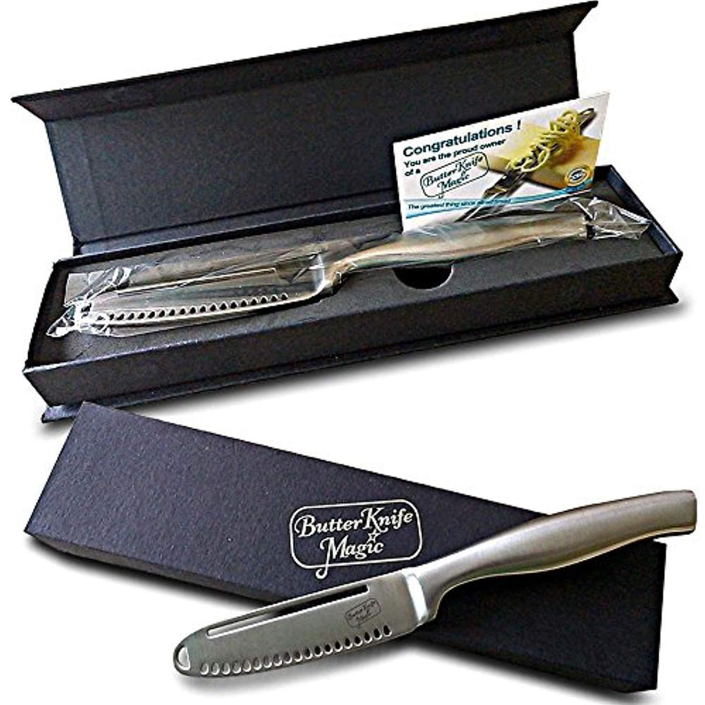 • PERFECT FOR GIFT-GIVING: It’s new, it’s different and it’s a remarkable conversation piece. Want to present a unique gift for the cook who has everything? This popular butterknife is amazing. It comes in a beautiful gift box all ready to wrap. Buy two and keep one for yourself. You know you want to!