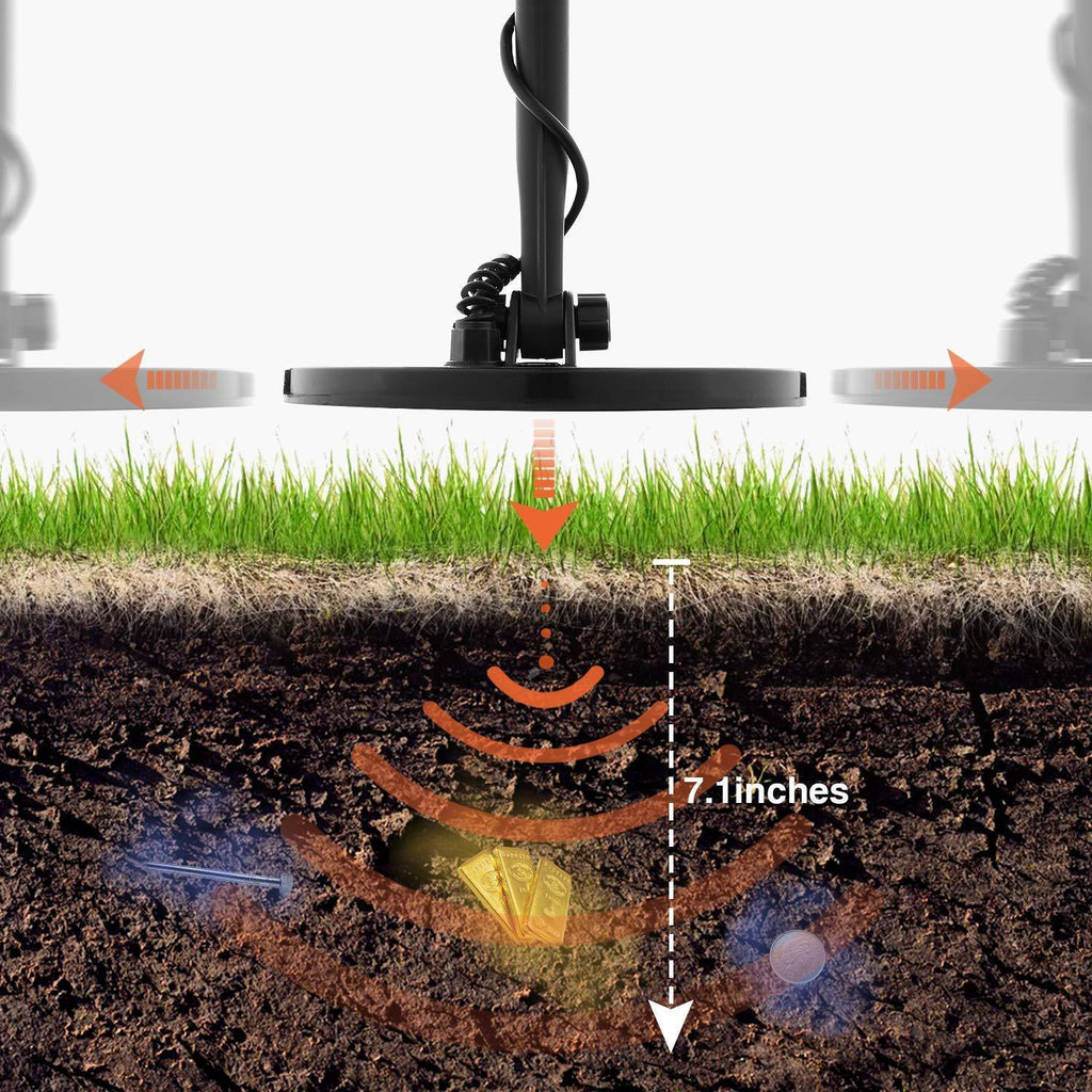• ▲INTUITIVE LCD CONTROL BOX▲: Ours metal detector equipped with large back-lit LCD screen to display depth(up to 7. 1" inches deep), operating mode, sensitivity level, battery condition, and volume level, you can distinguish between 7 target categories and eliminate unwanted metals. LCD Screen is very Intuitive and convenient.
