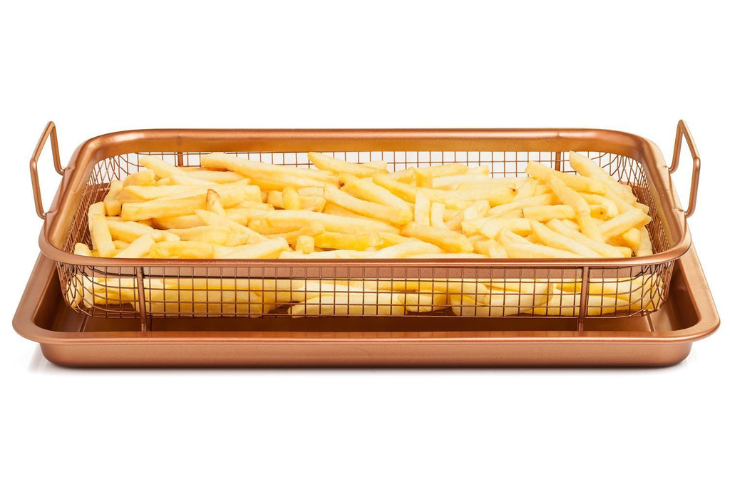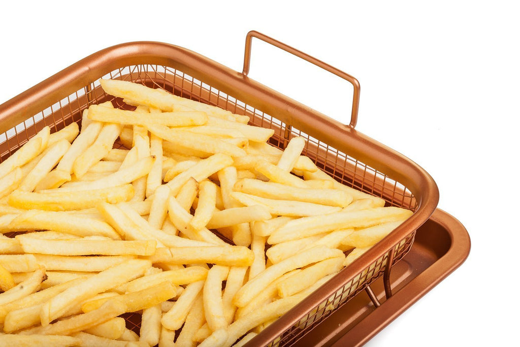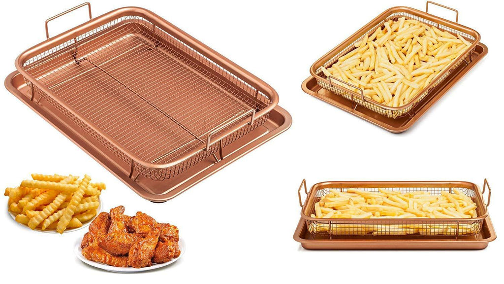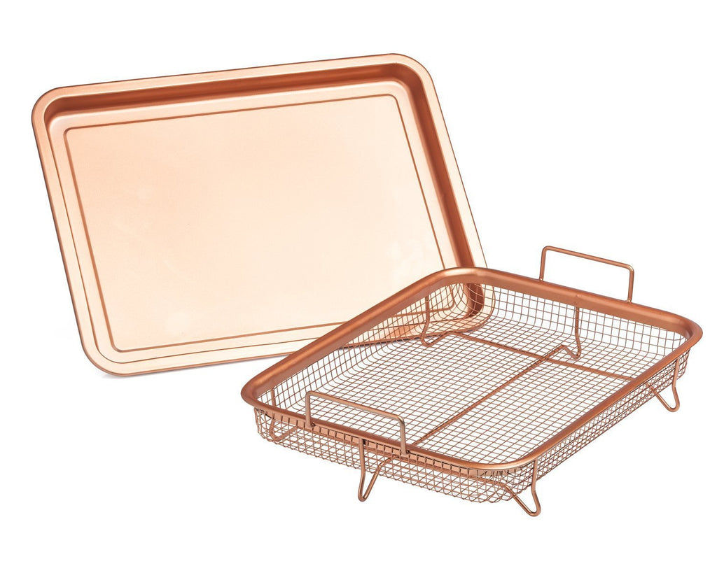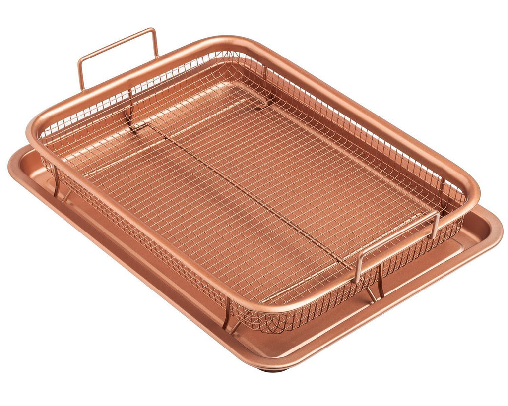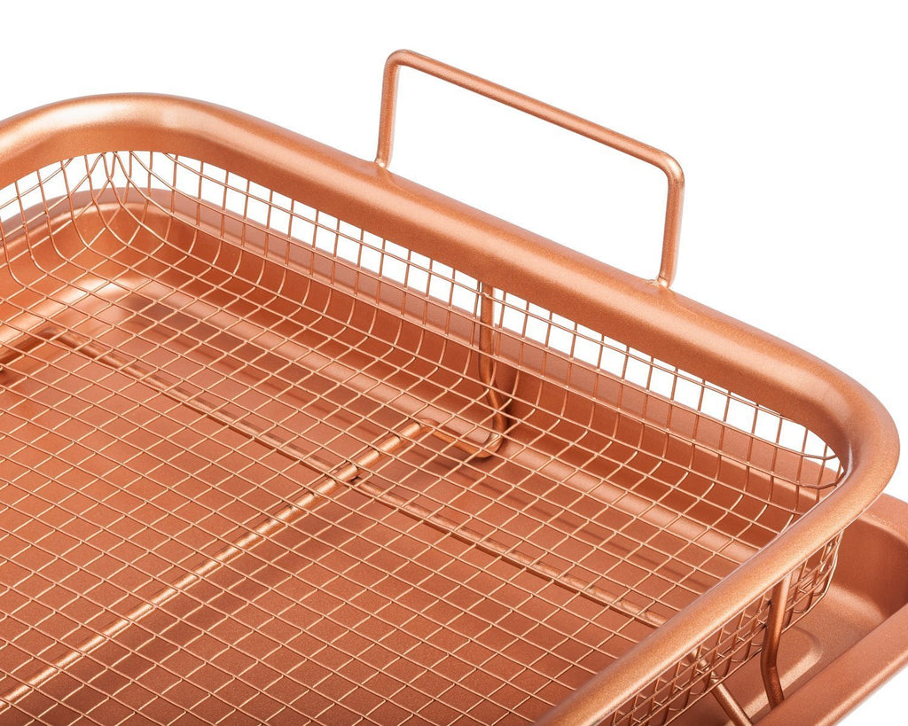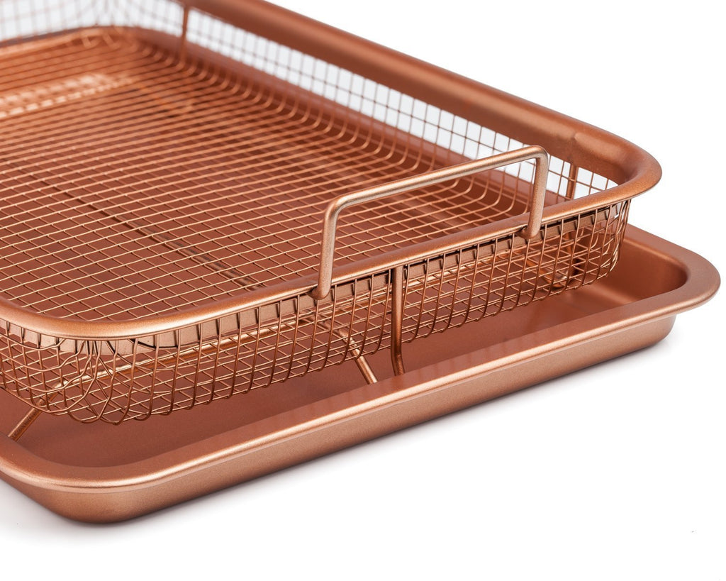 Chef’s Star Copper Crisper Tray - Ceramic Coated Cookie Tray & Mesh Nonstick Basket - Healthy Oil Free Air Frying Option For Chicken, French Fries, Onion Rings & More