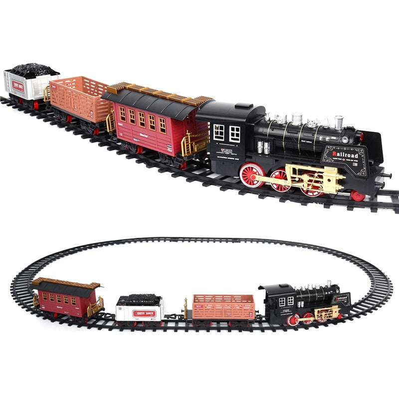 This train set has functions of smoking and lighting, and it will produce sound like the real train does during driving. Railways are easy to be connected firmly for simple installation. This train toy will definitely bring you lots of fun no matter as a model for collectors or decorations for Christmas Tree.
