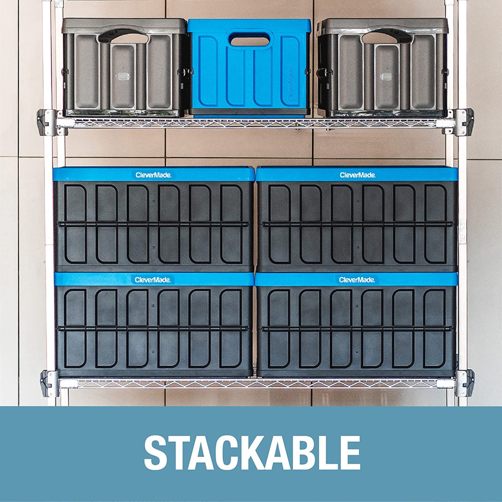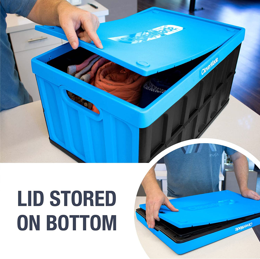 CleverMade CleverCrates 62 Liter Collapsible Storage Bin/Container: Solid Wall Utility Basket/Tote with Lid, Neptune Blue, 3 Pack