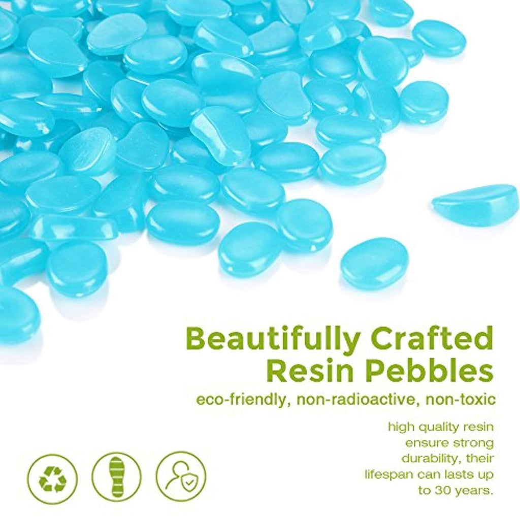 Cozzine 300 Pcs Glow in the Dark Garden Pebbles, Garden Decor Glowing Stones Luminous Rocks for Outdoor Walkway Driveway, Fish Tank Aquatium Glow Decorations (Deep Blue)