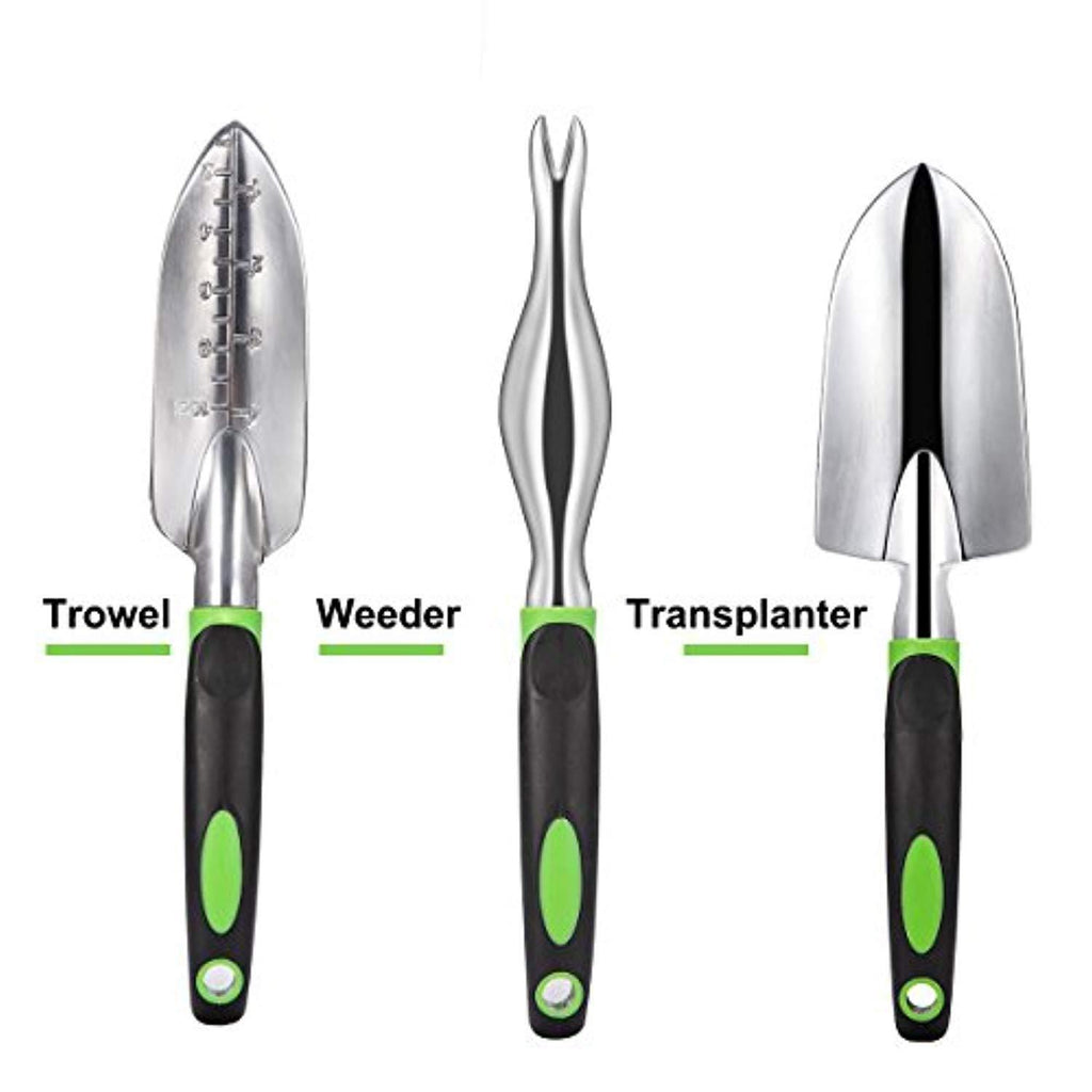 • ☘Comfortable Grip Rubber Handles - All the garden tools are ergonomically engineered. The soft-grip handles with excellent anti-slip performance are comfortable reduce hand and arm fatigue, providing you with pleasure using experience. Great for kids and seniors.