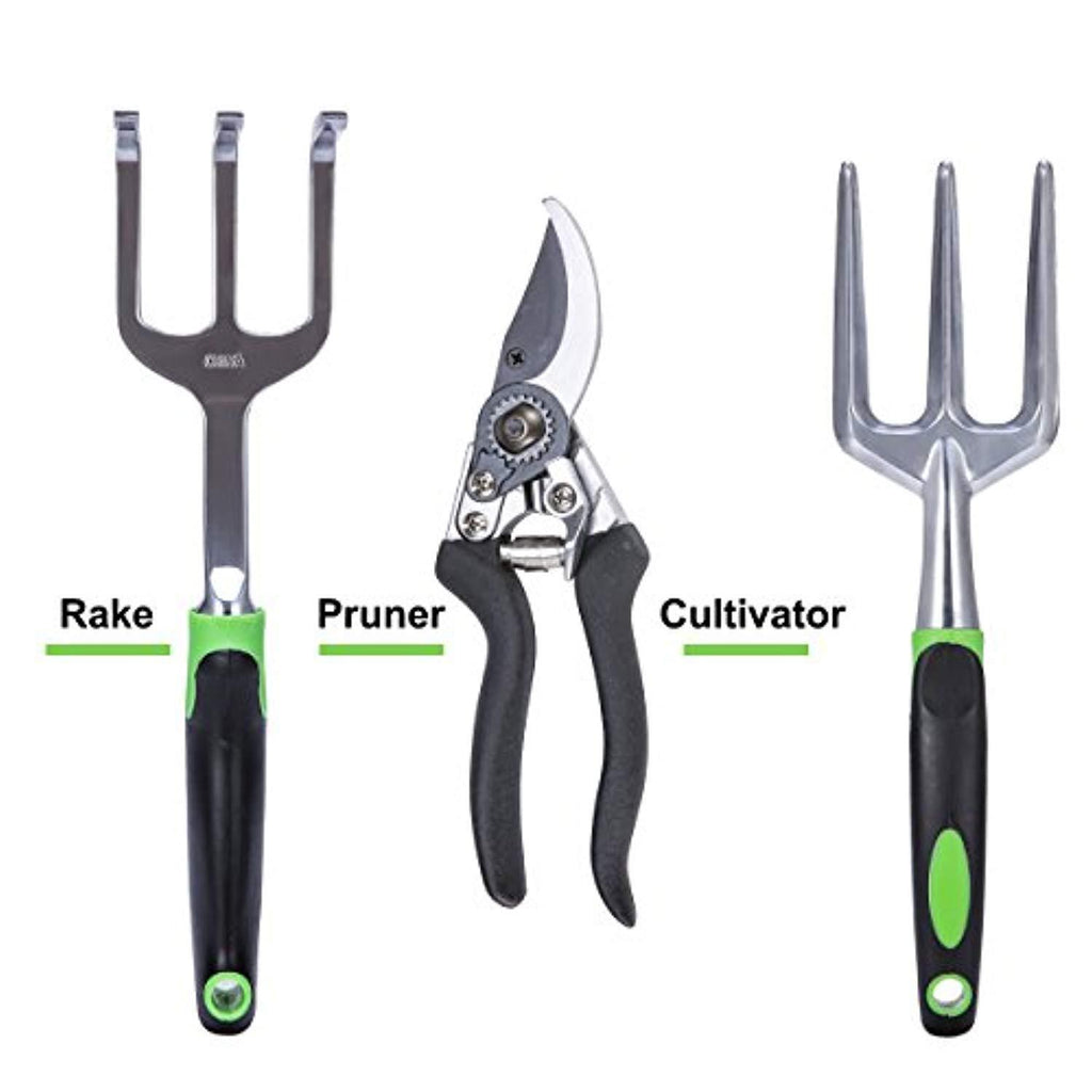 • ☘High Quality Made- The stainless steel garden tools set are high quality in durable, rust-proof and nondeformable.The high strength SK-5 carbon steel blades make cutting more faster and powerful. Do not hurt the branches.