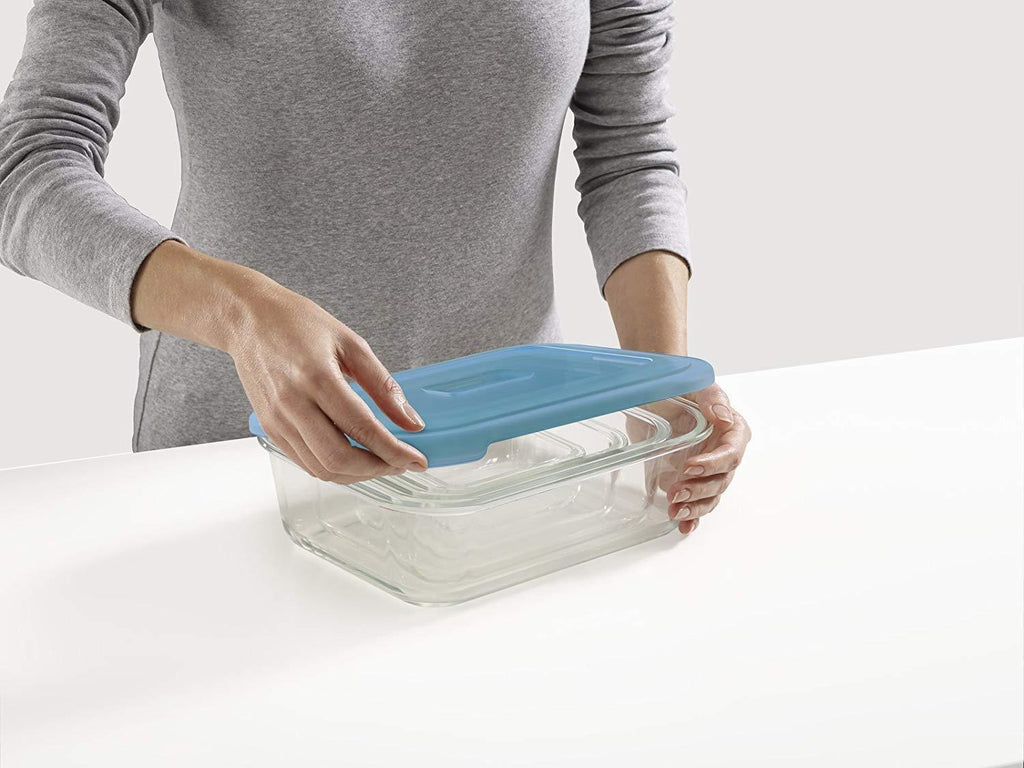 • Tough, borosilicate glass containers can be used as baking dish (oven-proof up to 536°F) and food storage containers