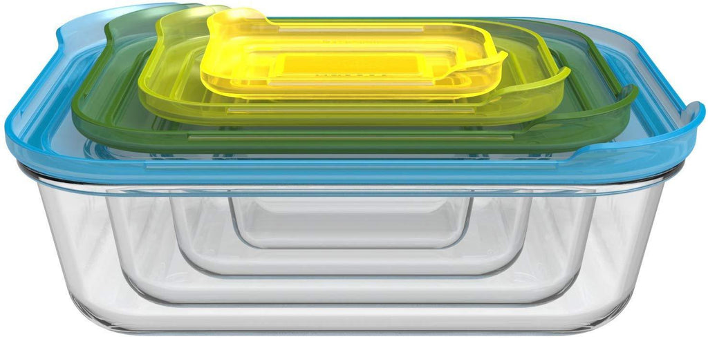 CulinWare 81064 Nest Glass Food Storage Container and Bakeware Set with Lids Oven Proof Freezer Microwave Dishwasher Safe, 8-piece, Multicolored