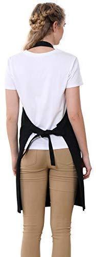 • PERFECT SIZE: Generous fit, works for male and female with the long 45 inches waist ties and a adjustable 28 inches neck strap. Each apron width is 28.3 inches and the length is 30.5 inches.