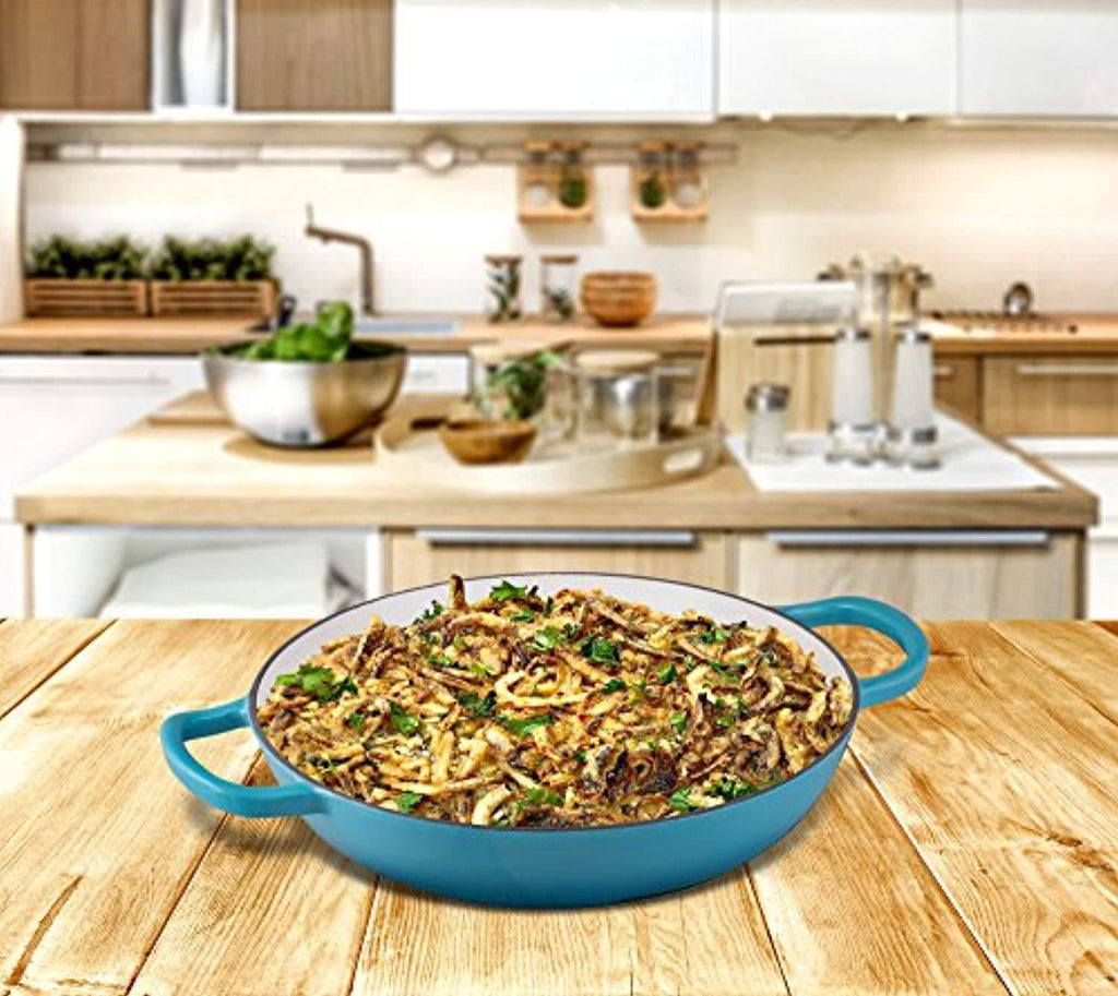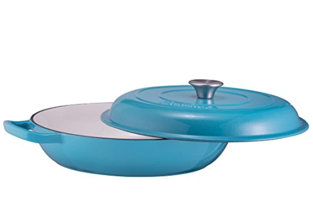 Enameled Cast Iron Casserole Braiser - Pan with Cover, 3.8-Quart, Marine Blue