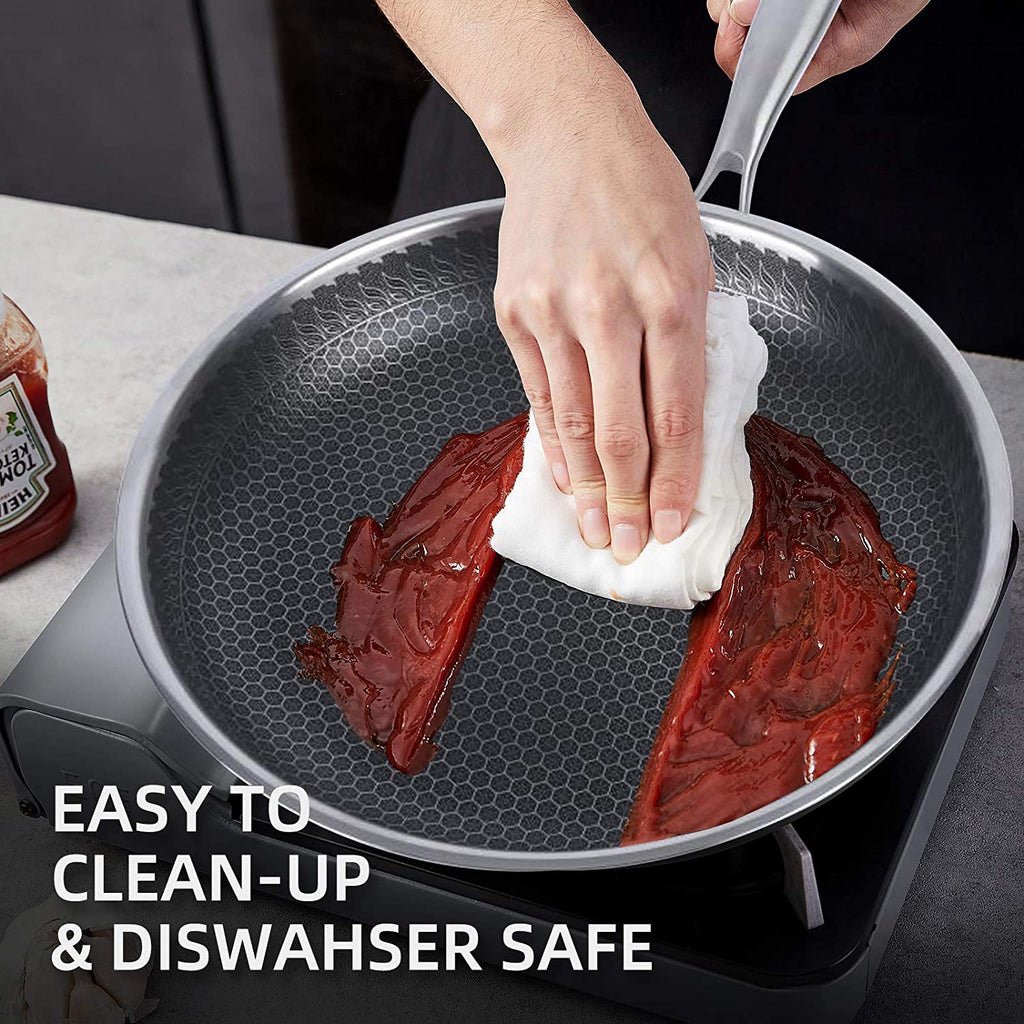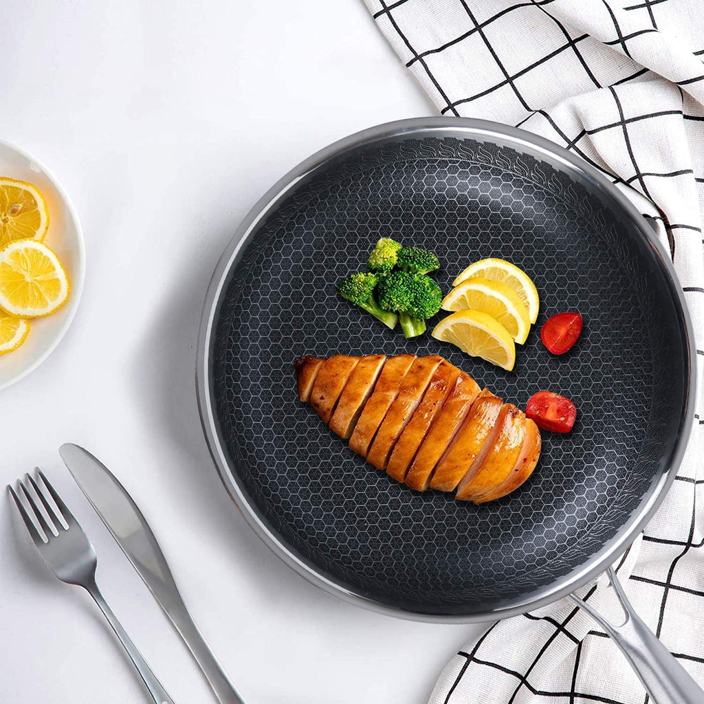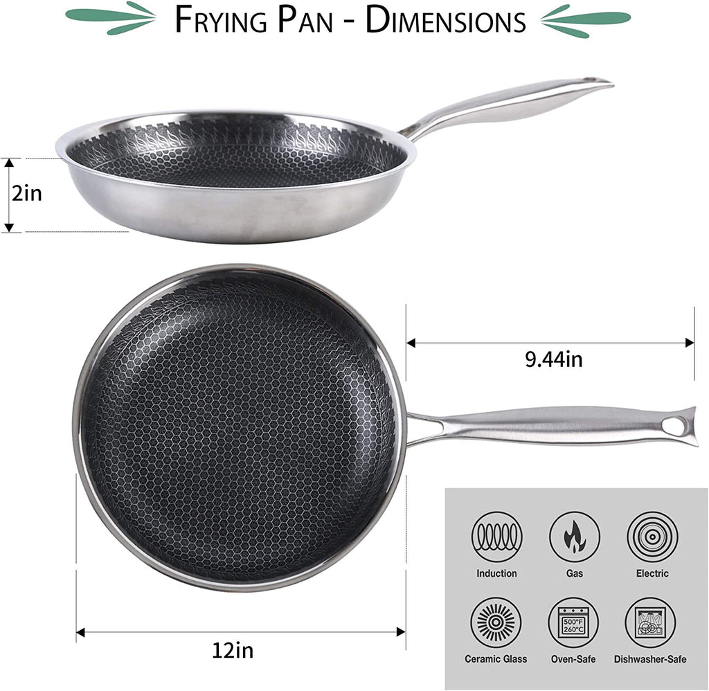 FCUS Frying Pan Nonstick, 12 inch Stainless Steel Honeycomb Egg Cooking Pan, Large Dishwasher and Oven Safe Skillet, Induction Compatible, Heavy Duty Nonstick Cookware