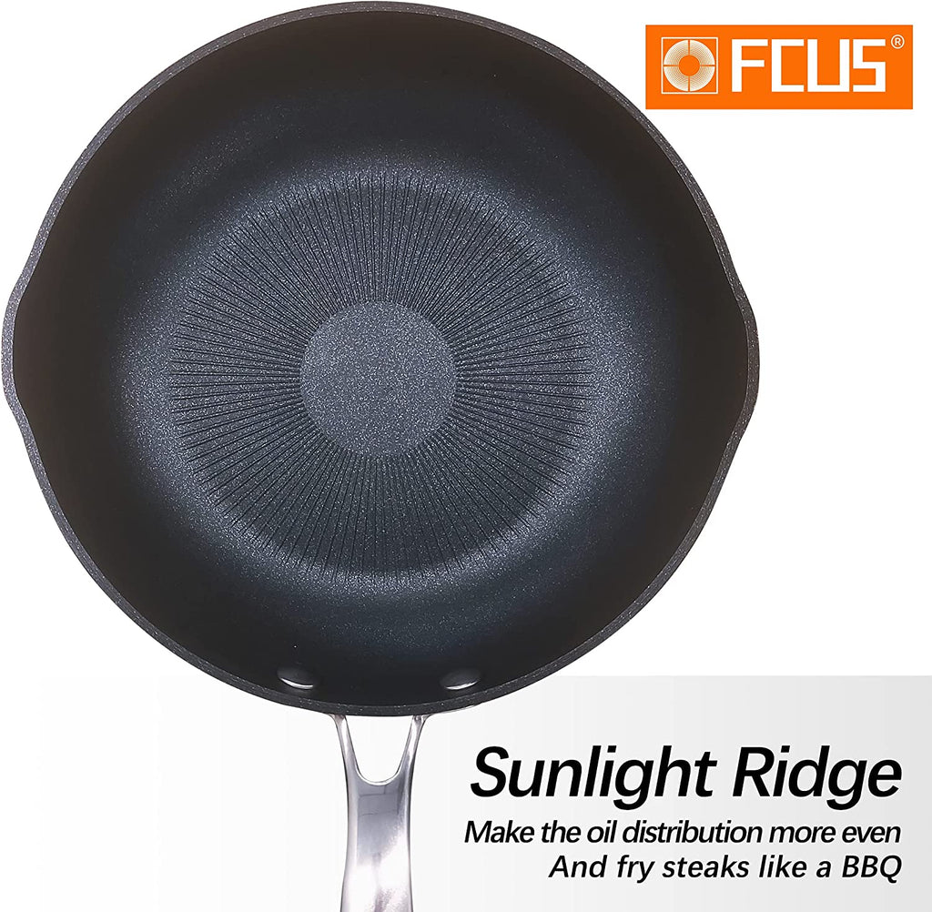 FCUS Nonstick Frying Pan, Oven Safe Pan, Hard-Anodized Aluminum Fry Skillet with Stainless Steel Handle, Works with Induction Cooktop, Gas, Ceramic, and Electric Stove (9.5 Inch) FCUS