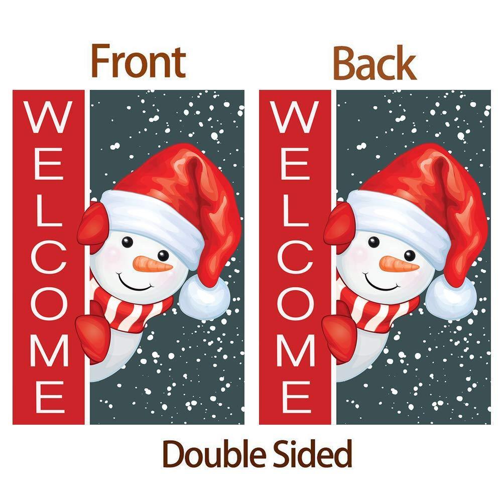 GDF Studio Christmas Welcome Garden Flag, Super Cute Snowman in Santa Hat Red Neckerchief Double-Sided, 100% All-Weather Polyester, Winter/Christmas Yard Flag to Bright Up Your Garden 12.5" x 18"