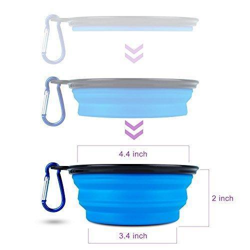 • Newest Design: The depth is adjustable. Portable size dog bowl of 4.4 inches wide top diameter, 3.4 inches wide bottom diameter, 2 inches height and only 1/2 inch thick while folded. Pet bowls holds up to 12 fluid ounces of water or 1.5 cups of dog food each