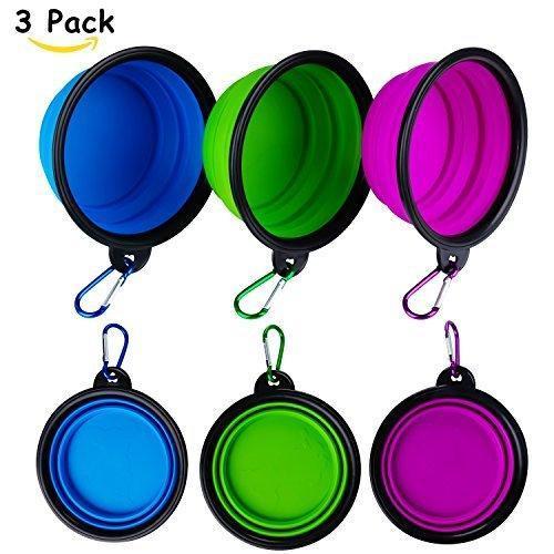 • Three Pack Set: Package includes three pieces of pet travel bowl, three metal carabiners. Colors are purple, green and blue, dry 100% and no moldy smell. More sanitary. A clean pet bowl every day for your dog