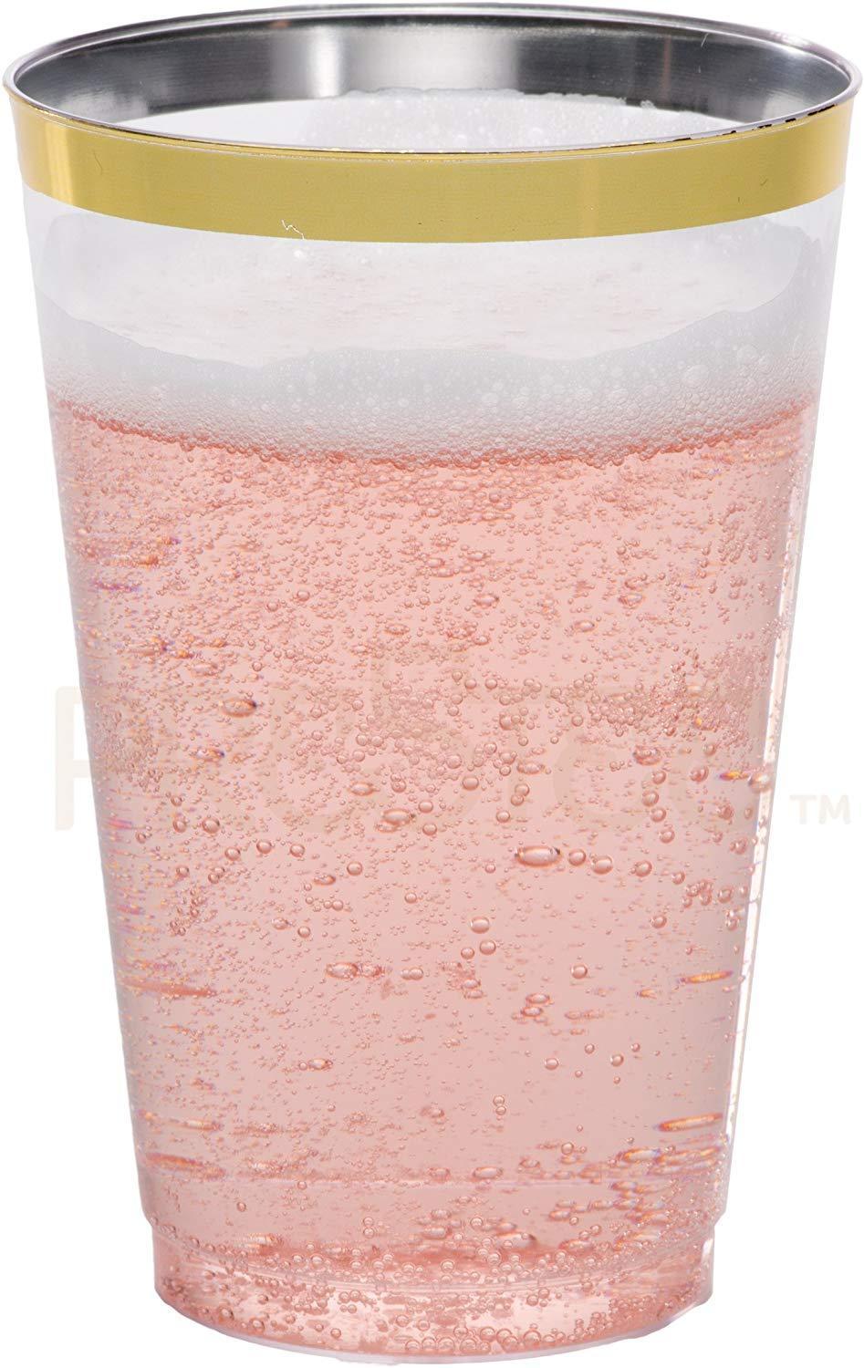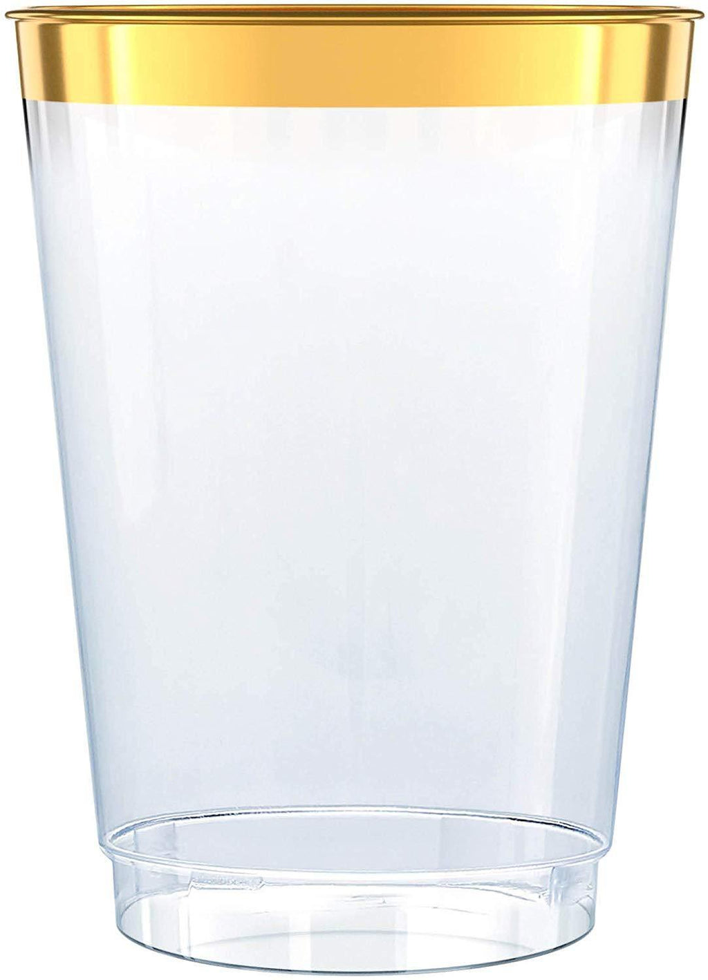• The polished gold rimmed plastic cups are fancy and elegant, the perfect choice for upscale occasions, dinner parties, wedding, holiday etc.