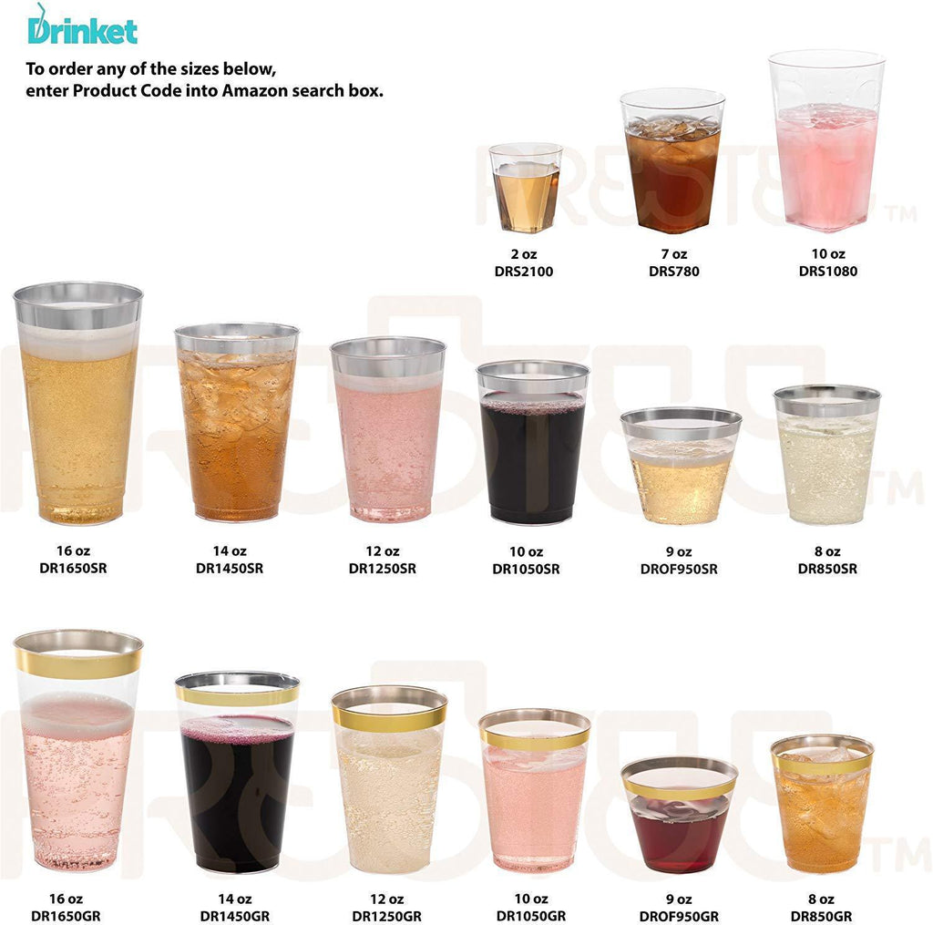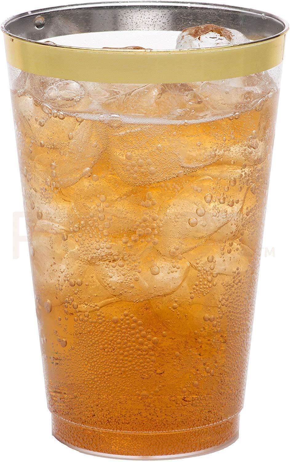 • 14oz cups gold trimmed plastic cups 50 count per pack are great for wine whiskey cocktail punch juice and elite water drinking cup