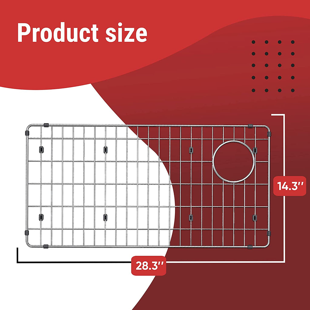 • MULTIFUNCTIONAL SINK PROTECTOR GRID: bottom grid for kitchen sink with well-made metal construction offers additional workspace for rinsing and drying vegetables, fruits, defrosting foods, cooling hot containers, drying dishes.