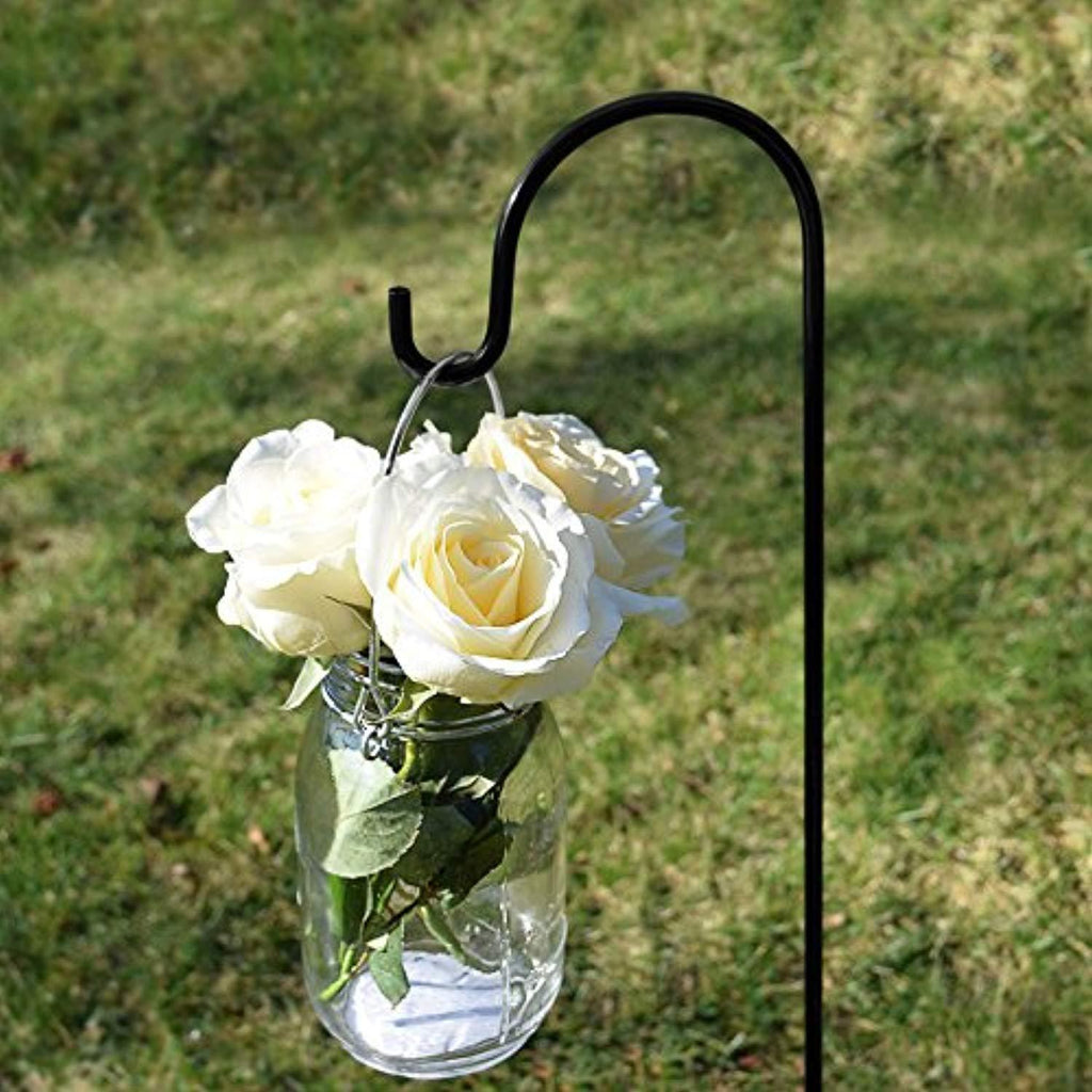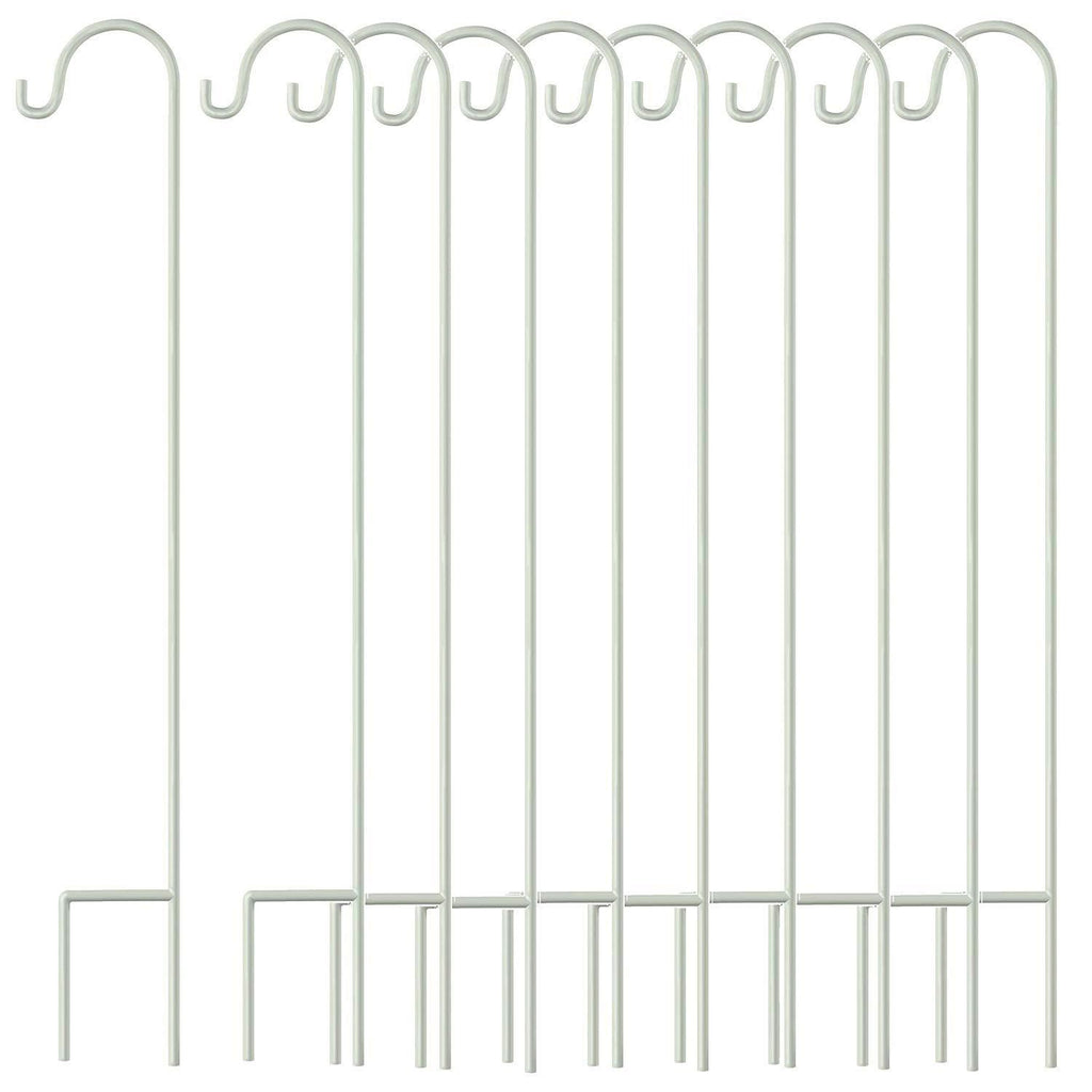 • PREMIUM QUALITY: We recommend avoiding any shepherd hooks that require assembly, are hollow, or have plastic parts, all of which are things which compromise hook integrity, look and strength. GrayBunny Shepherd hooks are single piece and solid steel. These garden stakes are also rust resistant. Double forked and extra-long base prongs at the foot of the rod maintain a fixed, upright posture while remaining firmly planted in the ground. Bring your heaviest pots and baskets!
