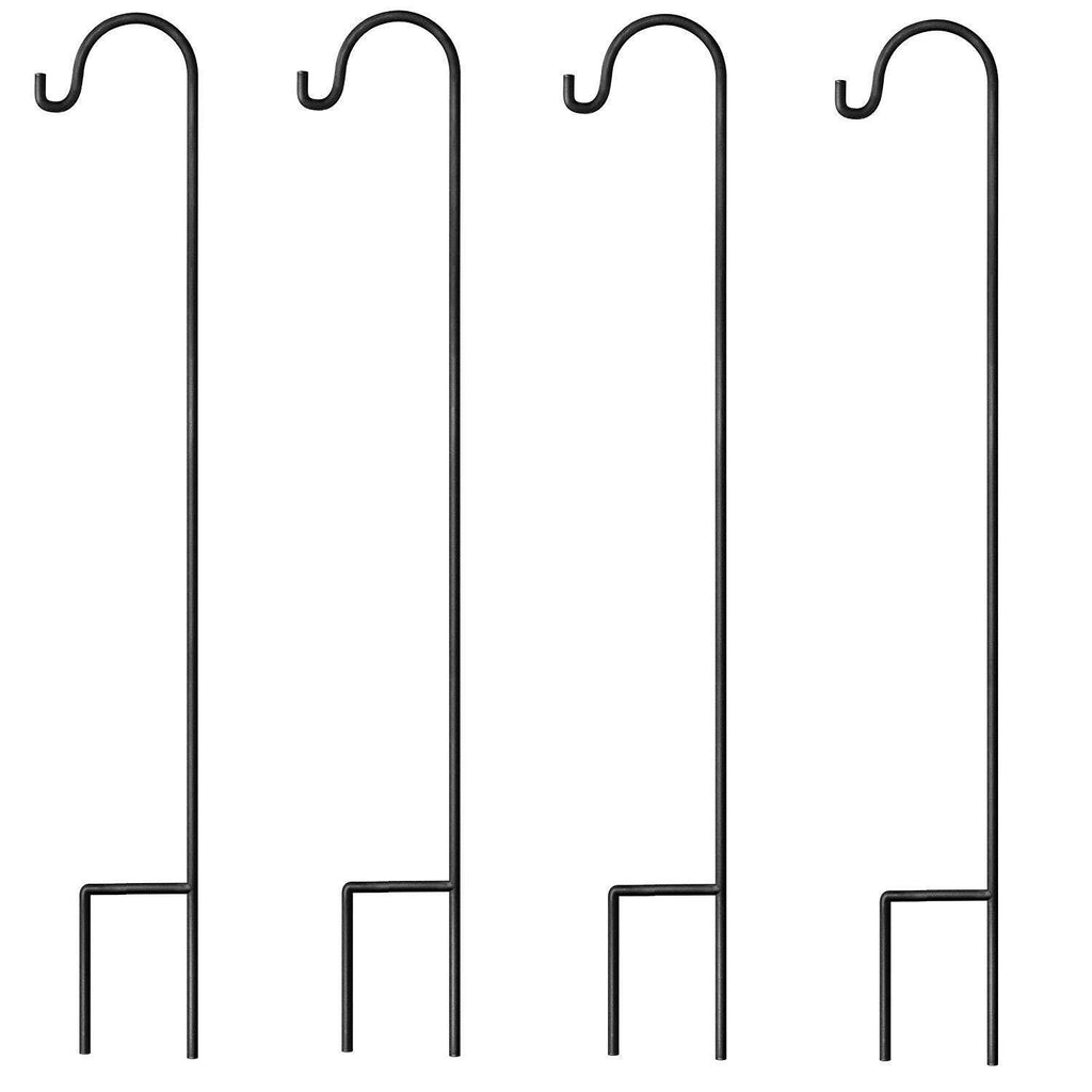 GrayBunny Shepherd Hook, 35 inch Black, Set of 4 Solid (Non-Hollow) Single Piece (No Assembly), Strong Rust Resistant Premium Metal Hanger For Weddings Plant Baskets Solar Lights Lanterns & Mason Jars